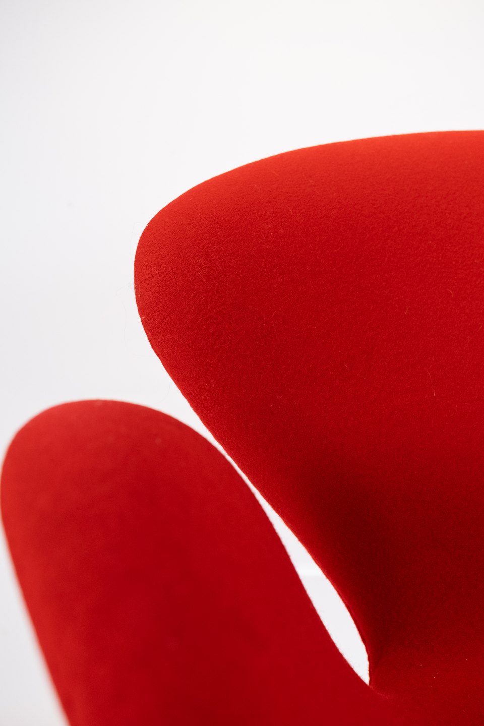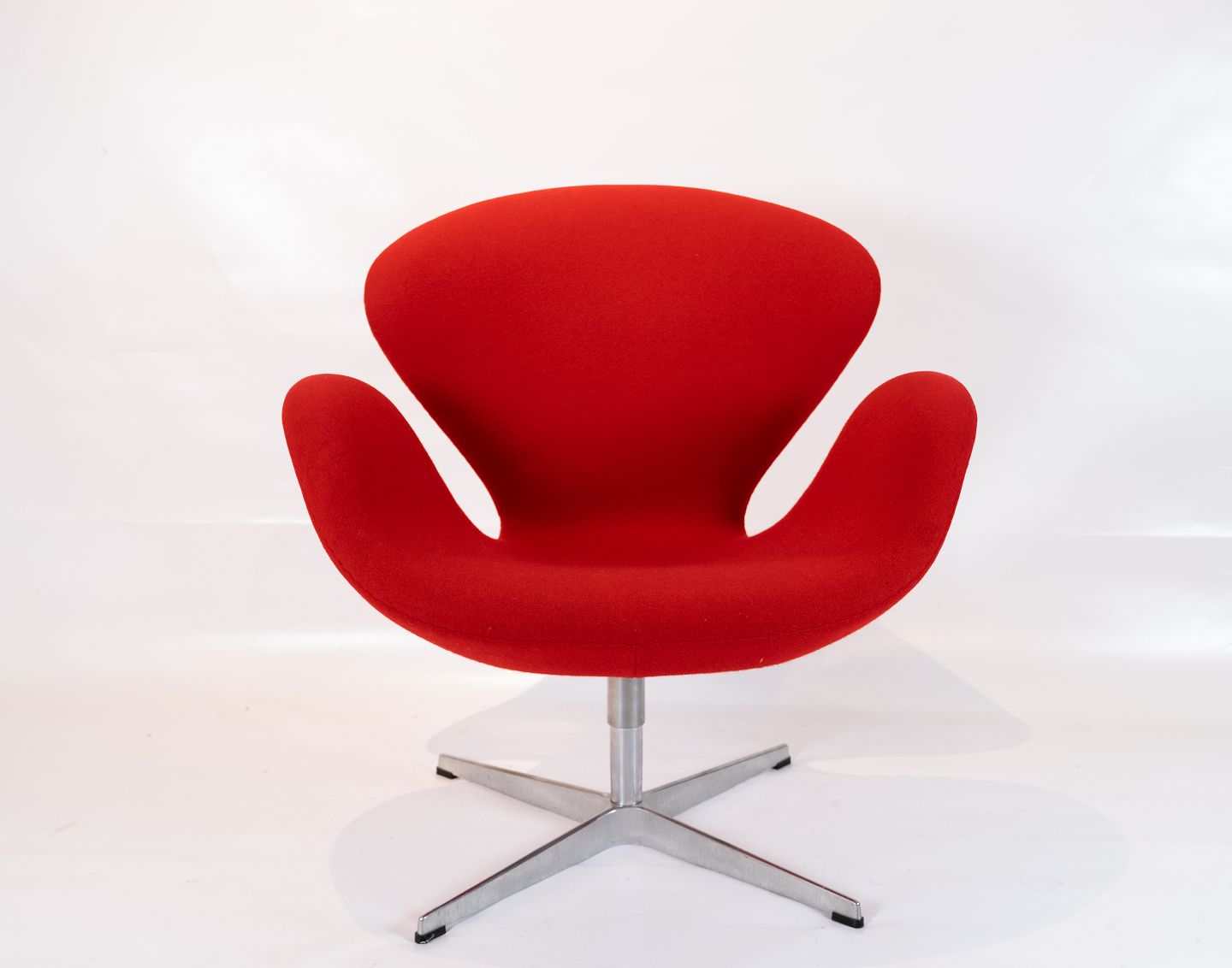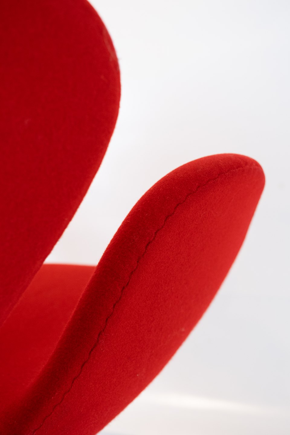 The Swan chair, model 3320, designed by Arne Jacobsen in 1958 and manufactured by Fritz Hansen.The chair is upholstered with red Hallingdal fabric.