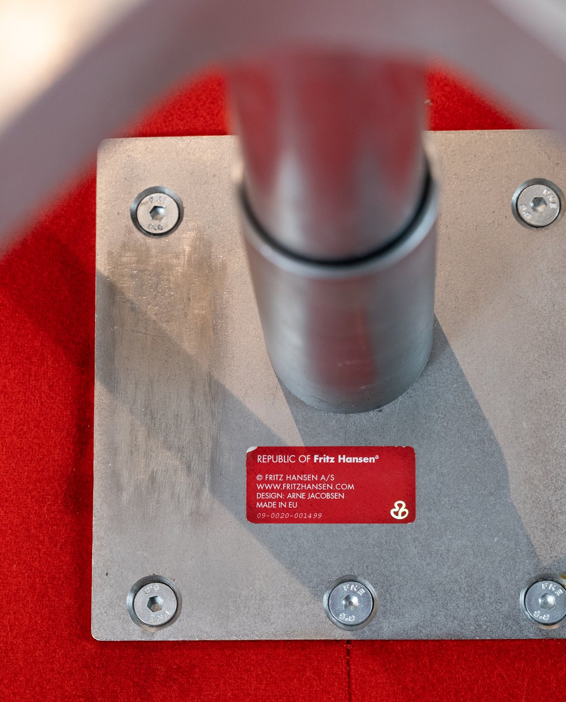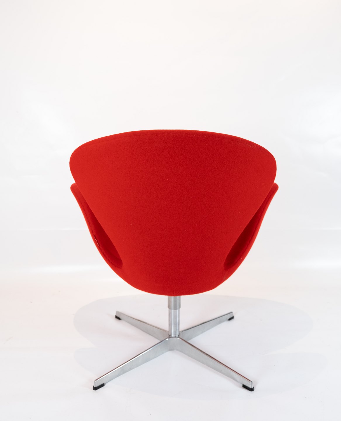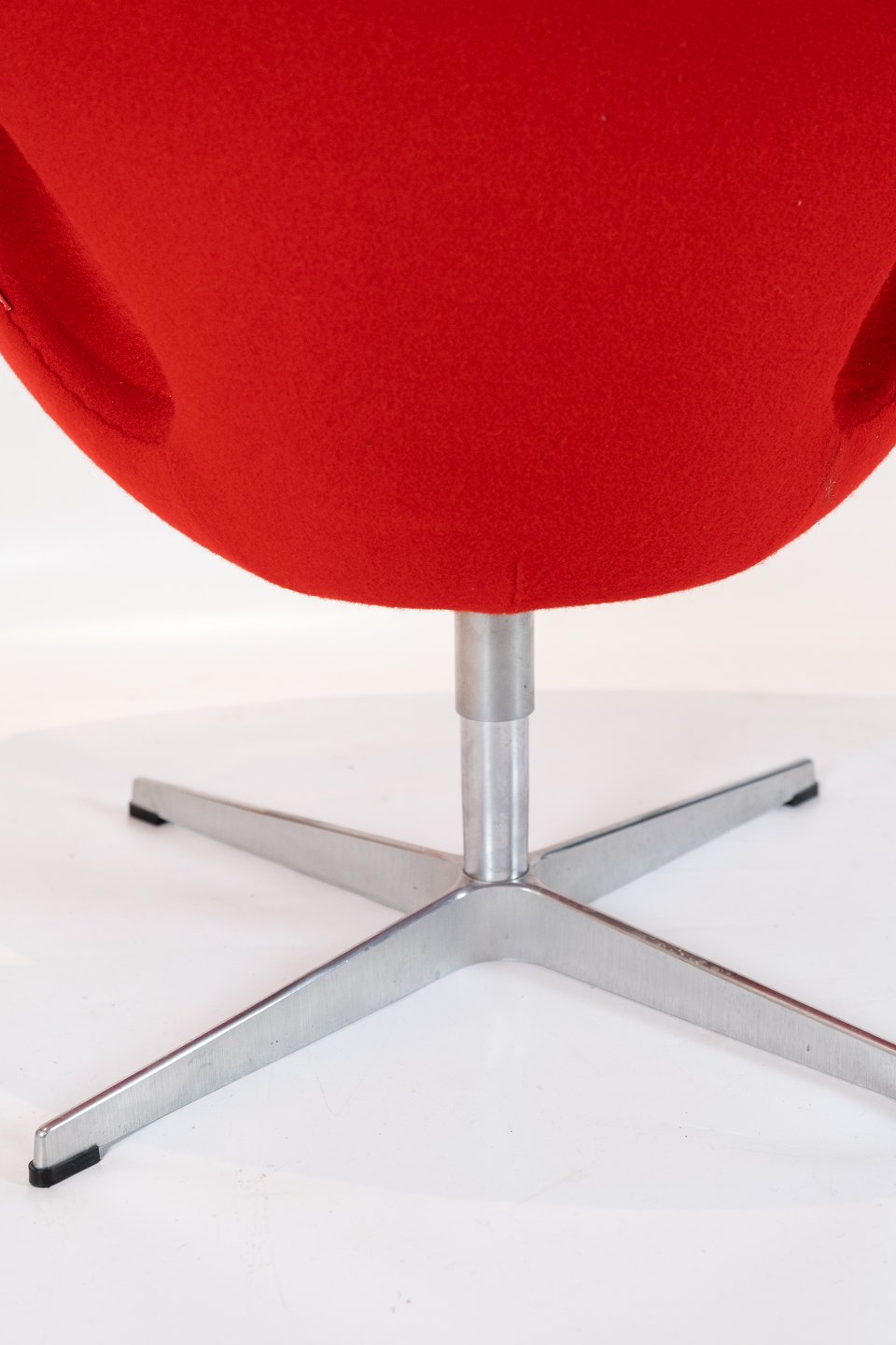 The Swan chair, model 3320, designed by Arne Jacobsen in 1958 and manufactured by Fritz Hansen.The chair is upholstered with red Hallingdal fabric.