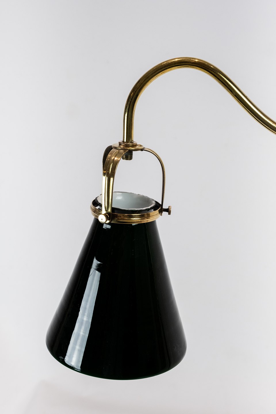 SoldTable lamp of brass in Jugend style and with green opaline glass shade from the 1930s. The lamp is in great vintage condition.