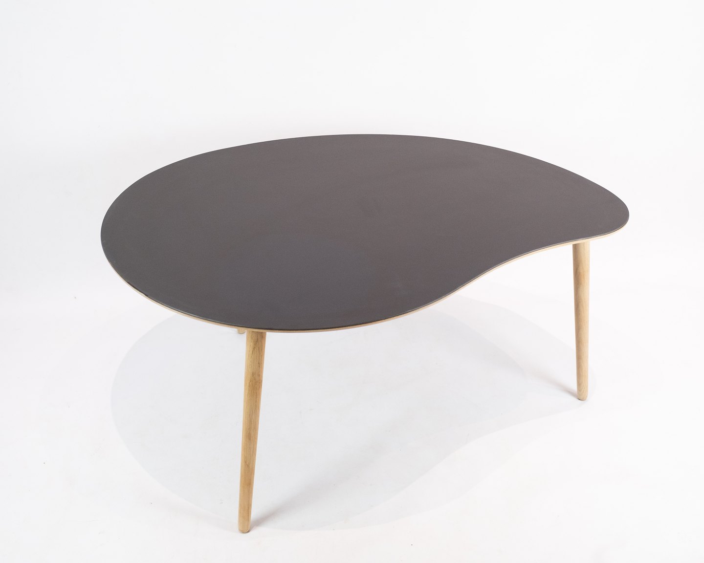 SolgtSofabord med mørkegrå laminat top og ben i egetræ af Via Copenhagen. Bordet er i flot stand.