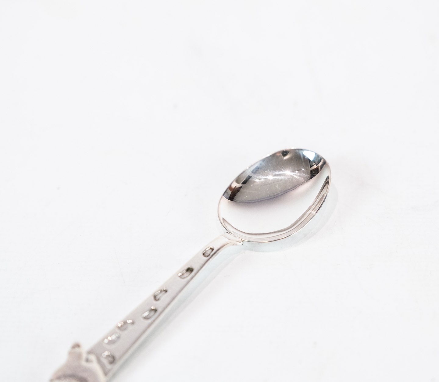 Small children's spoon with motif of H.C. Andersens's The Little Match Girl in hallmarked silver.