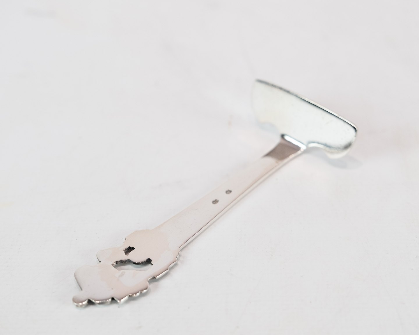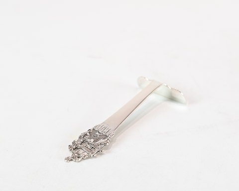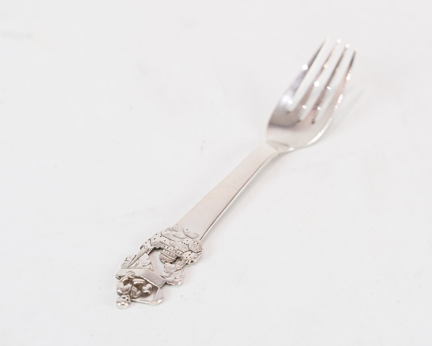 Children's fork and pusher for food with motif H.C. Andersen's The Flying Trunk in hallmarked silver.
