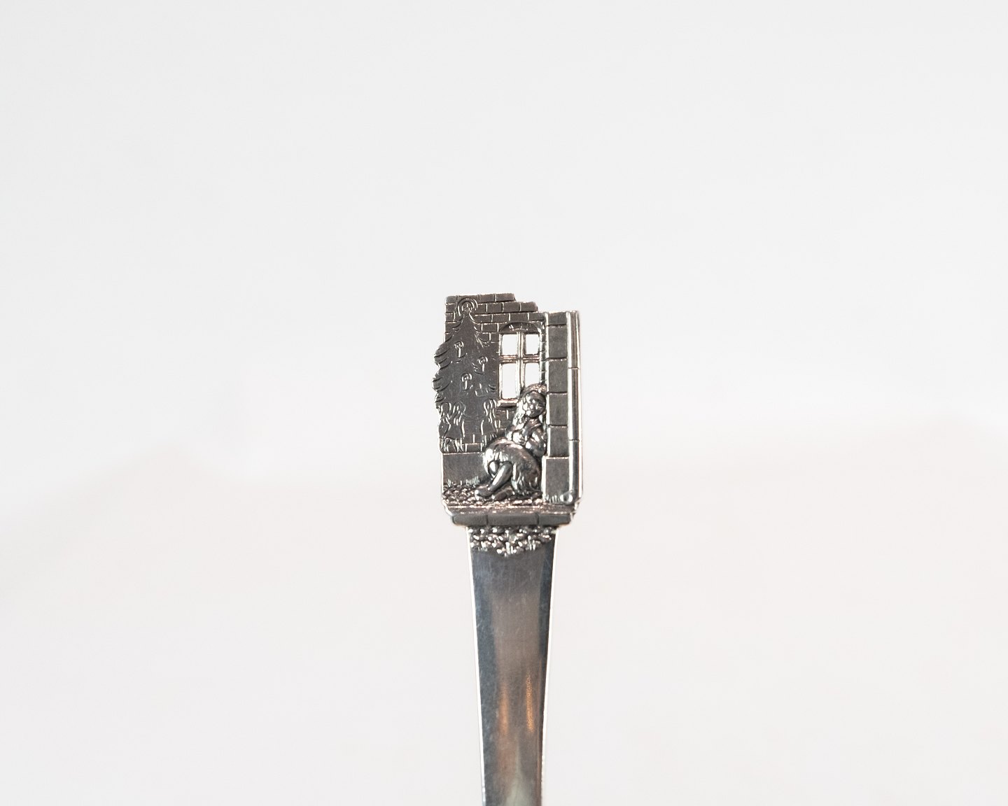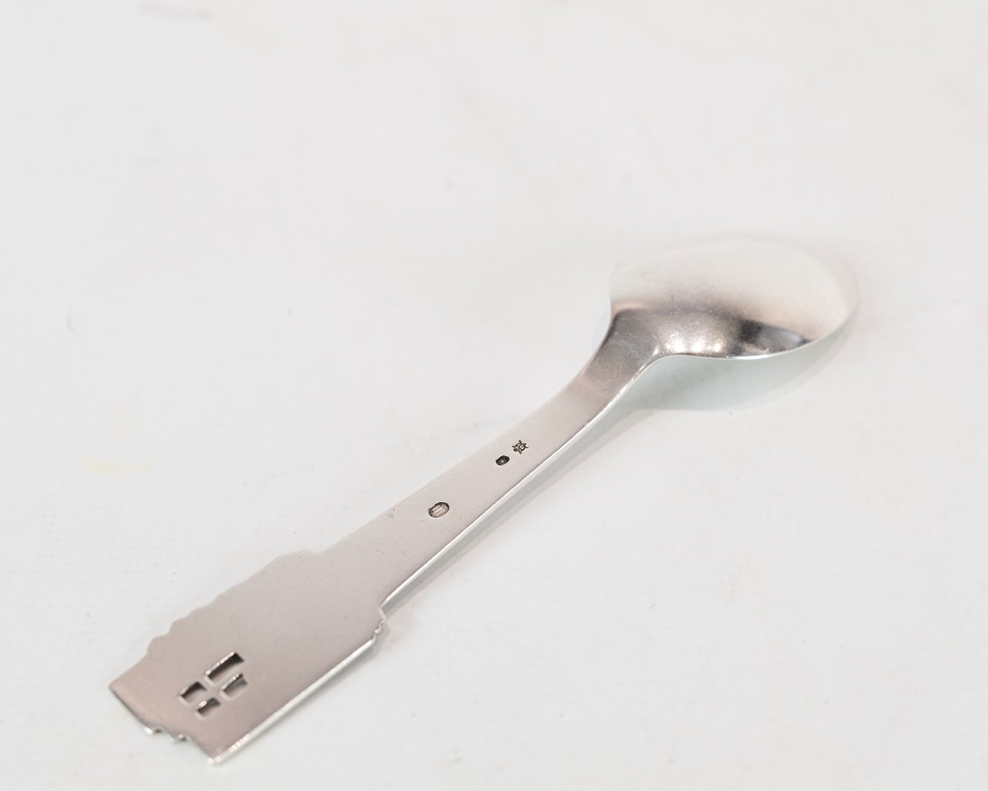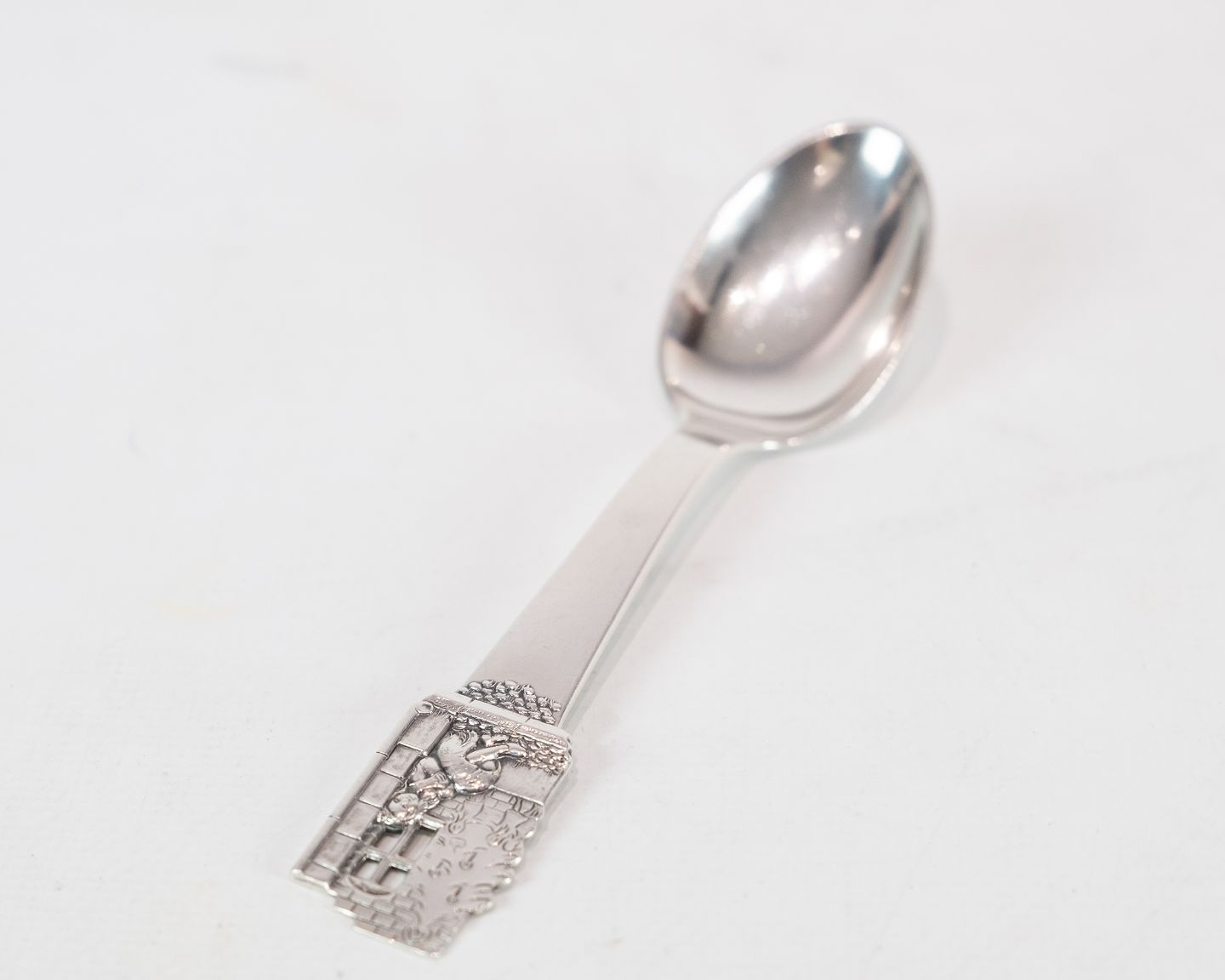 Children's spoon with motif of H.C. Andersen in hallmarked silver.