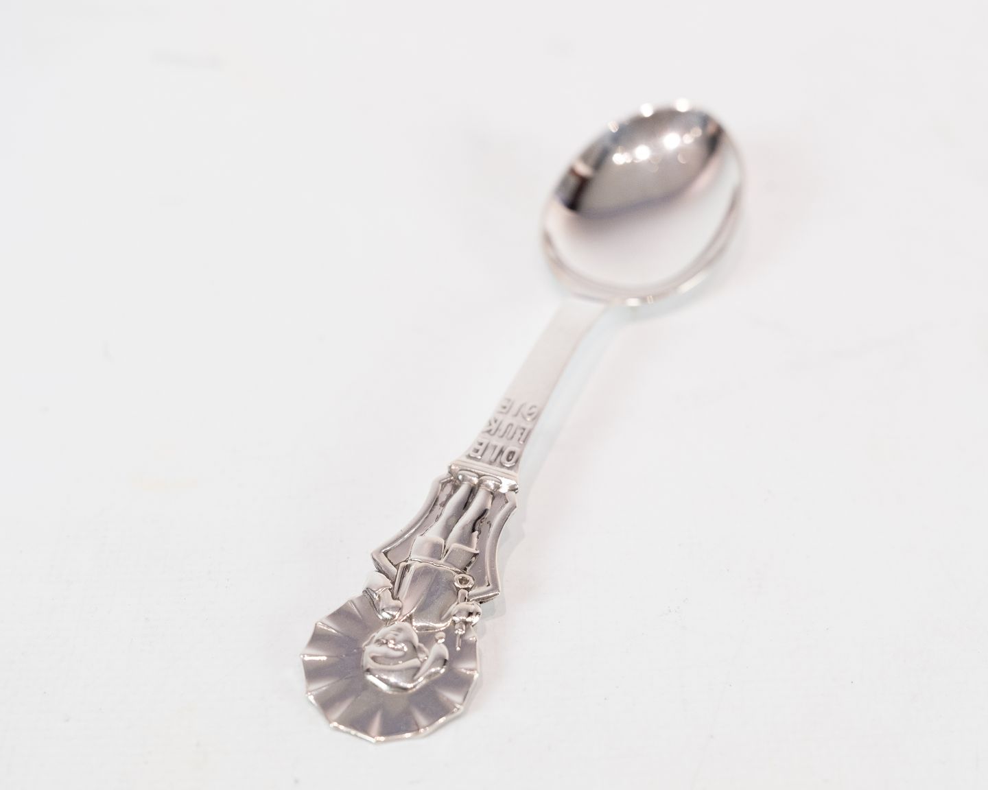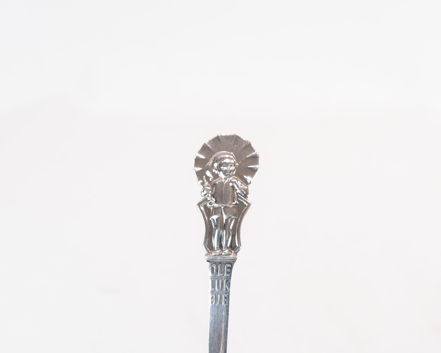 SoldChildren's spoon with motif of H.C. Andersen's Sandman in hallmarked silver.