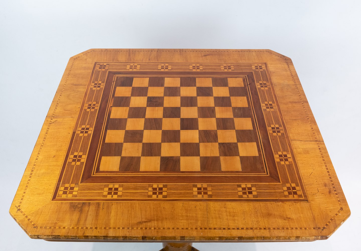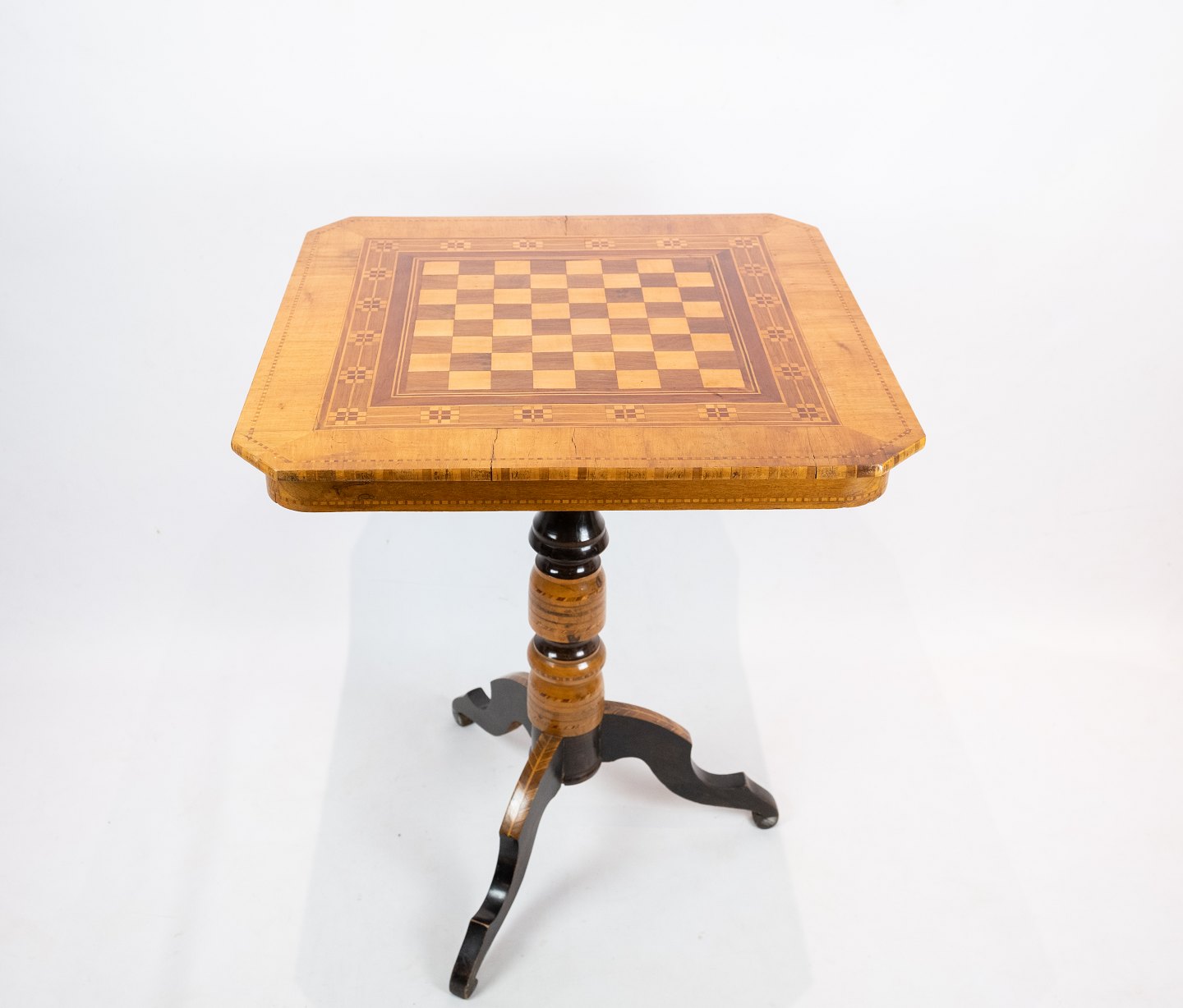 SoldAntique sidetable of polished wood with chess top plate of Italian design from the 1860s. The table is in great vintage condition.