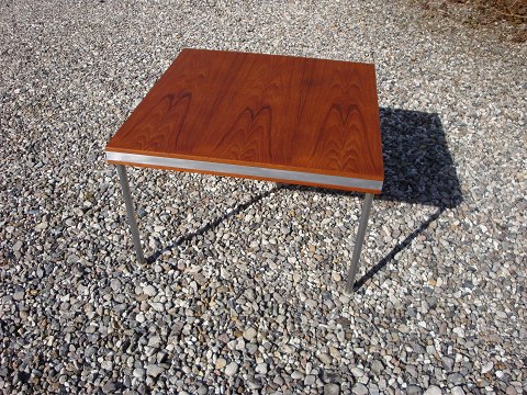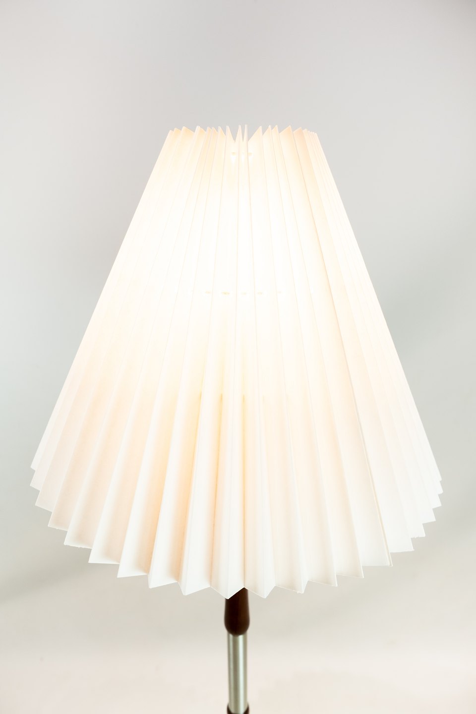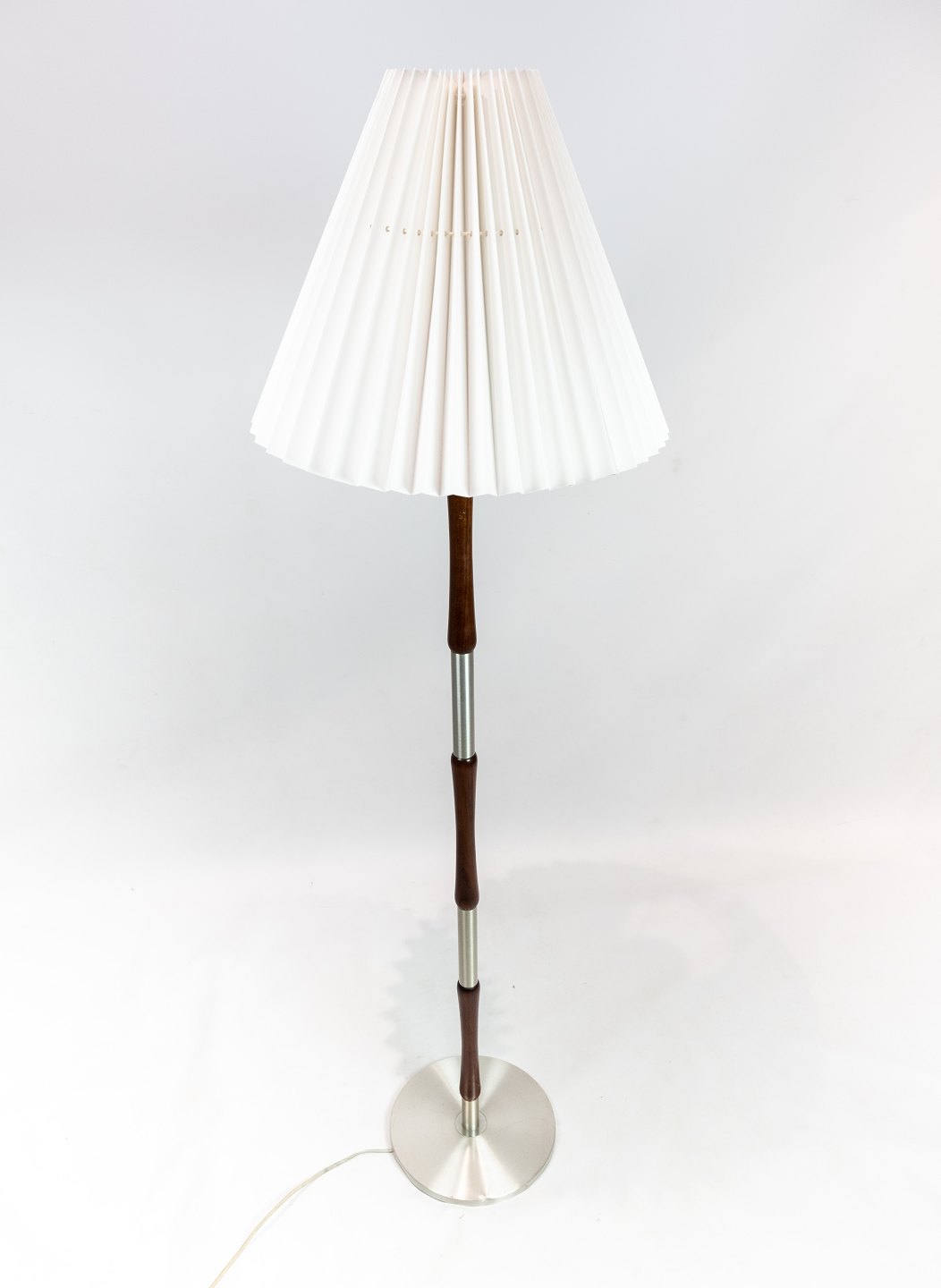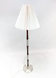 SolgtGulvlampe i palisander og aluminium af dansk design fra 1960erne. Skærmen er håndfoldet og håndmalet i papir.