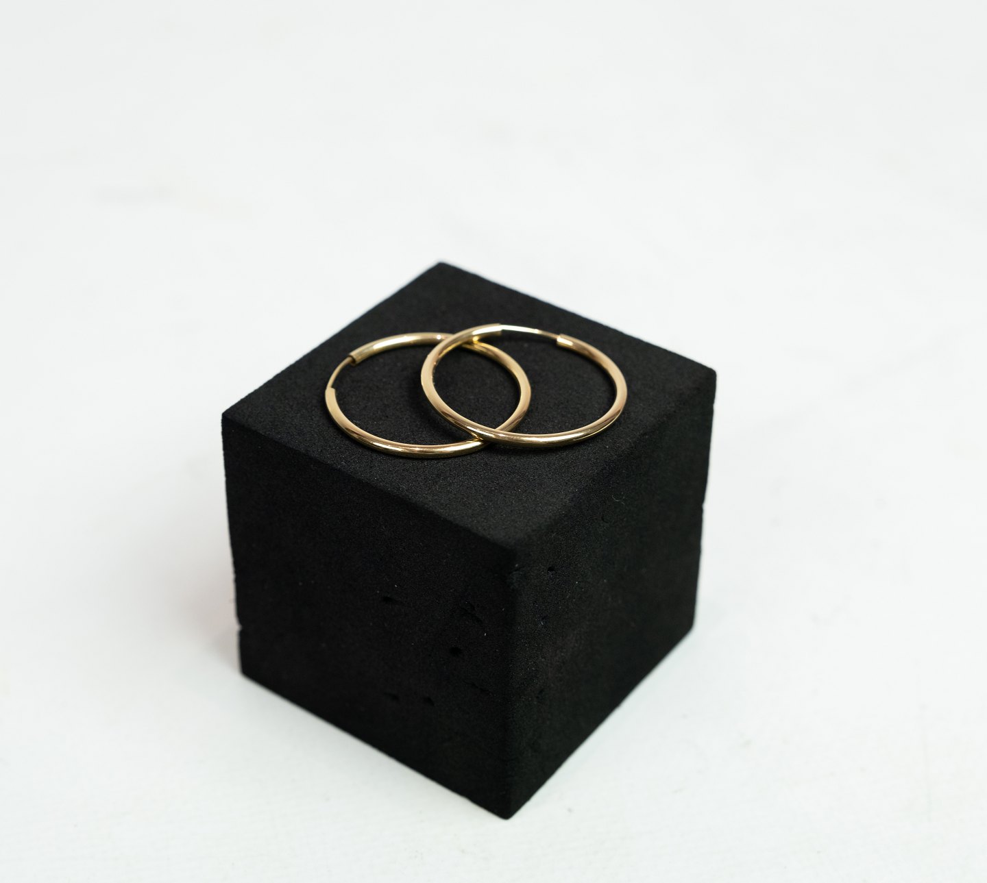 A pair of smaller hoops of 14 carat gold.
