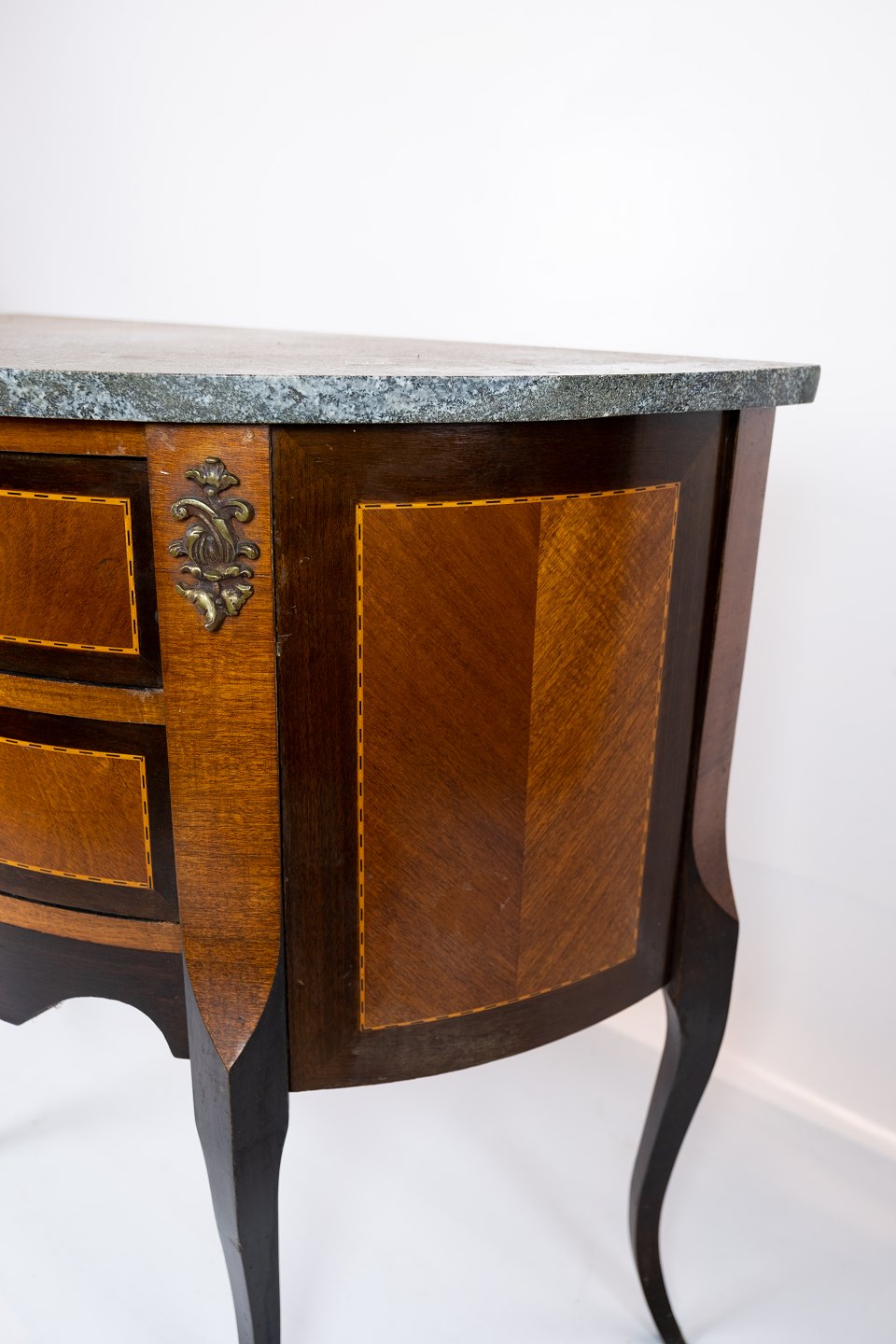 SoldRococo chest of drawers in dark wood with marble table top from the 1920s. The chest is in great antique condition.