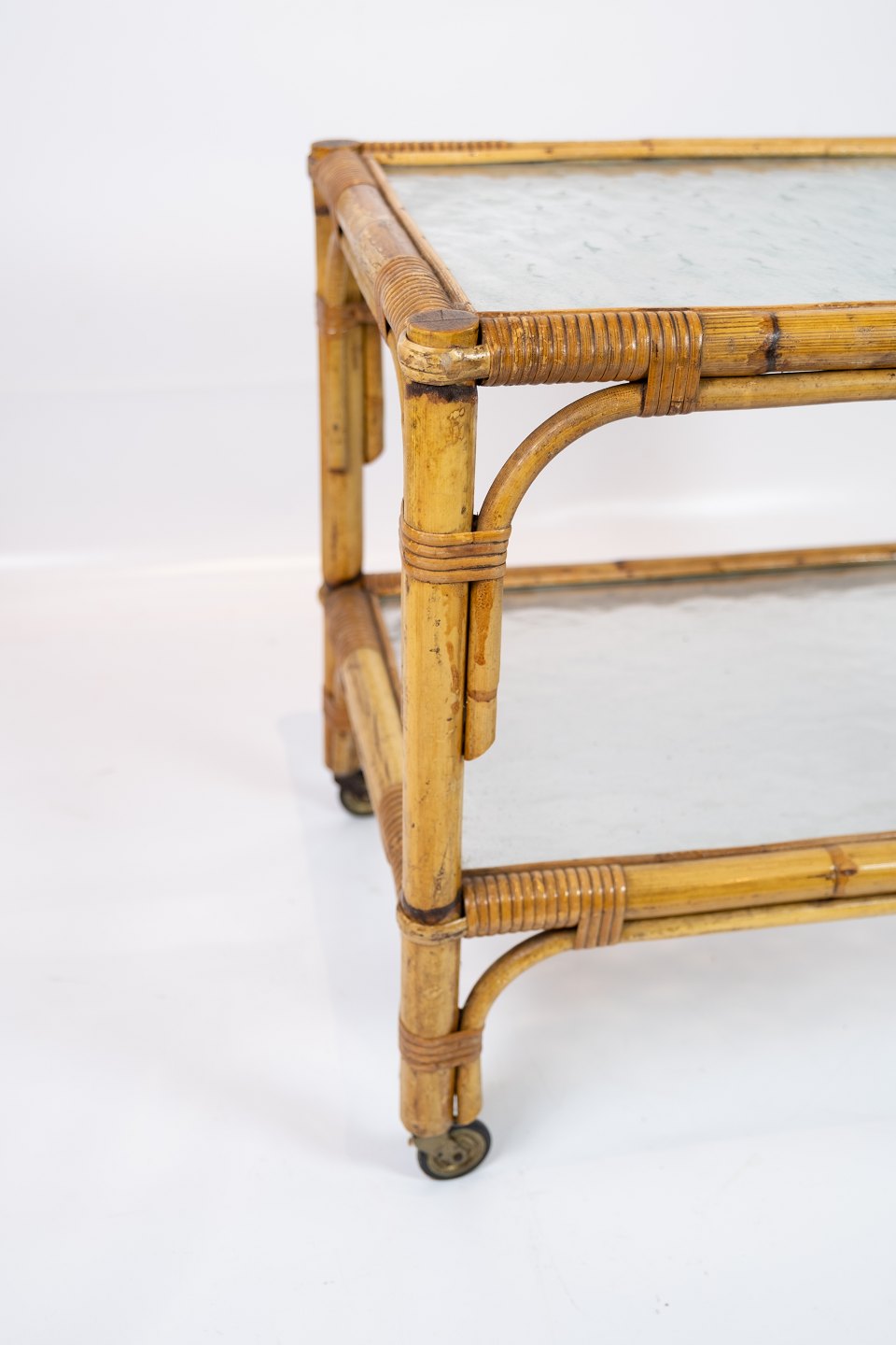Tray table on wheels of Bamboo and with glass plates from the 1960s.
