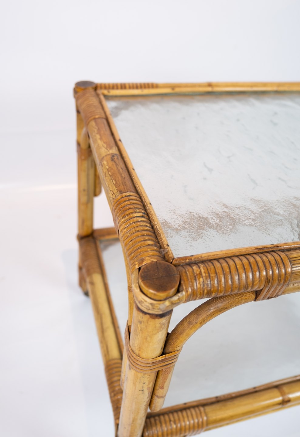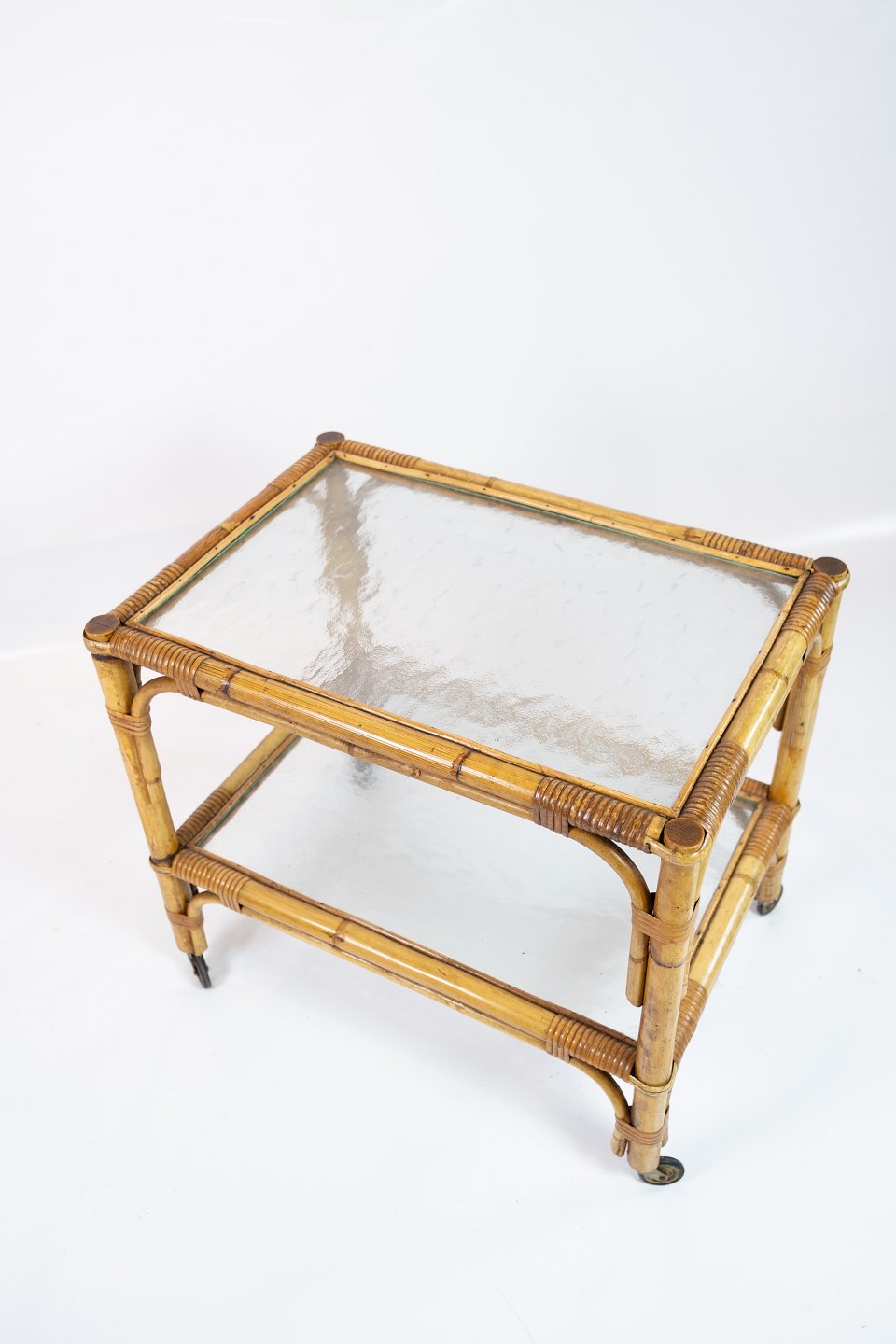 Tray table on wheels of Bamboo and with glass plates. The table is in great vintage condition and from the 1960s.