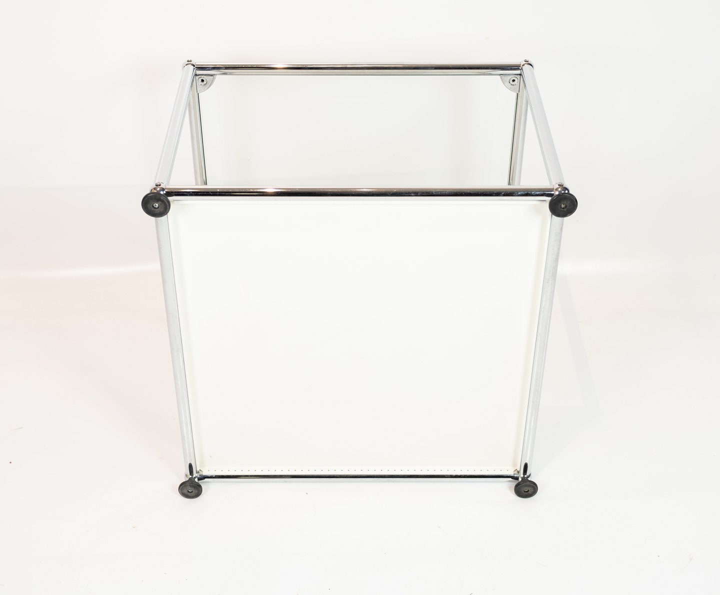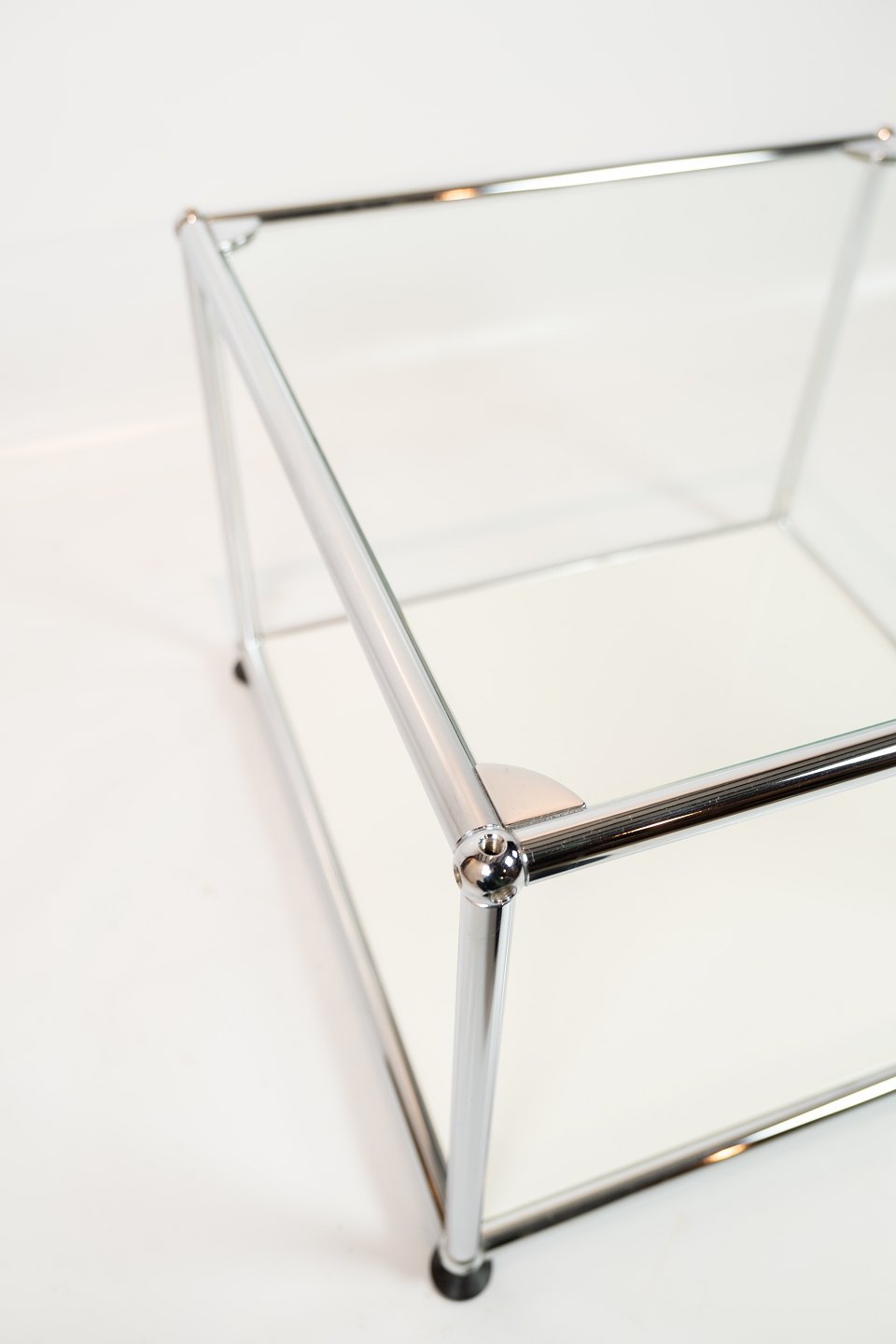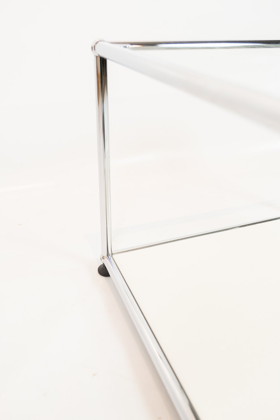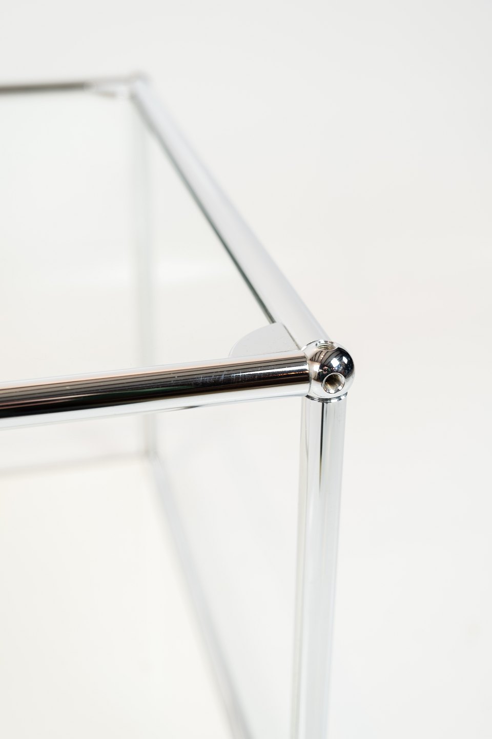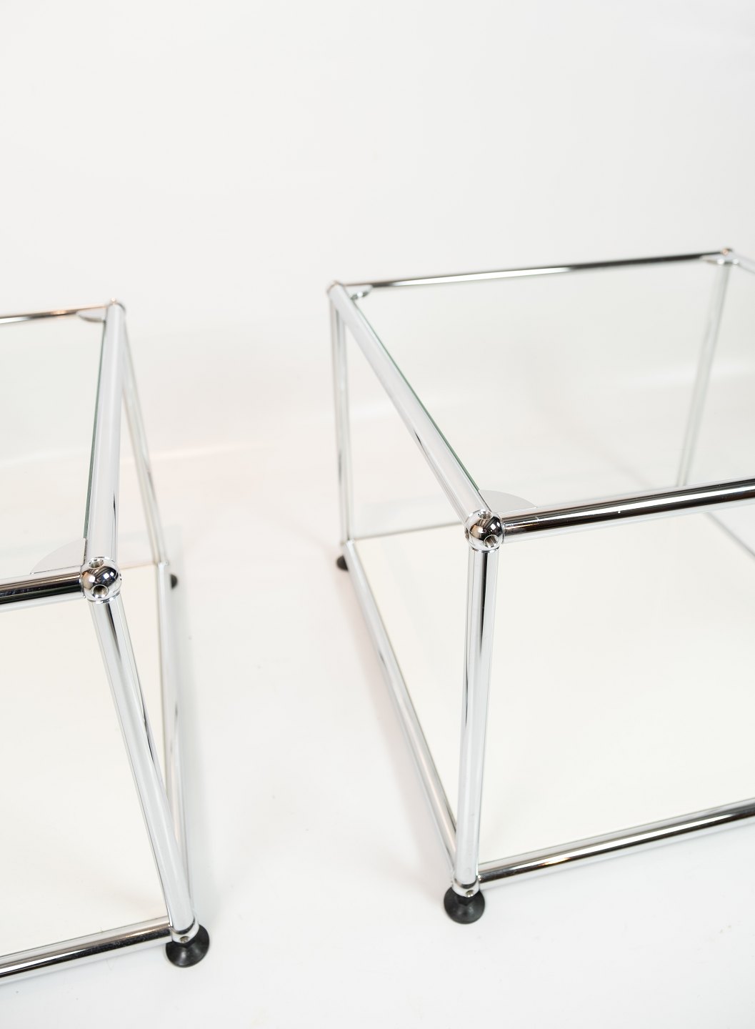 A pair of italian side tables in glass and frame of chrome, in great vintage condition.