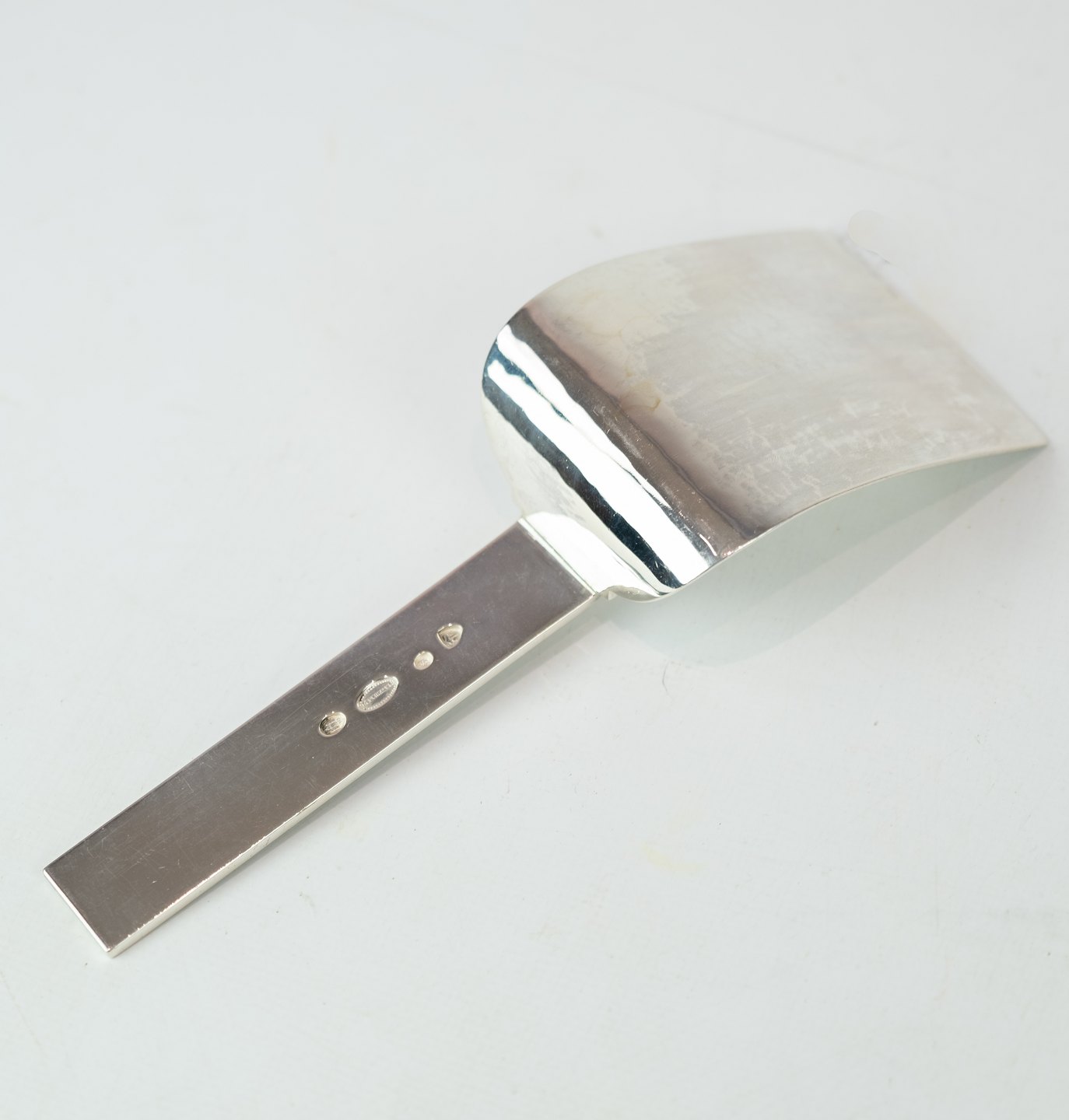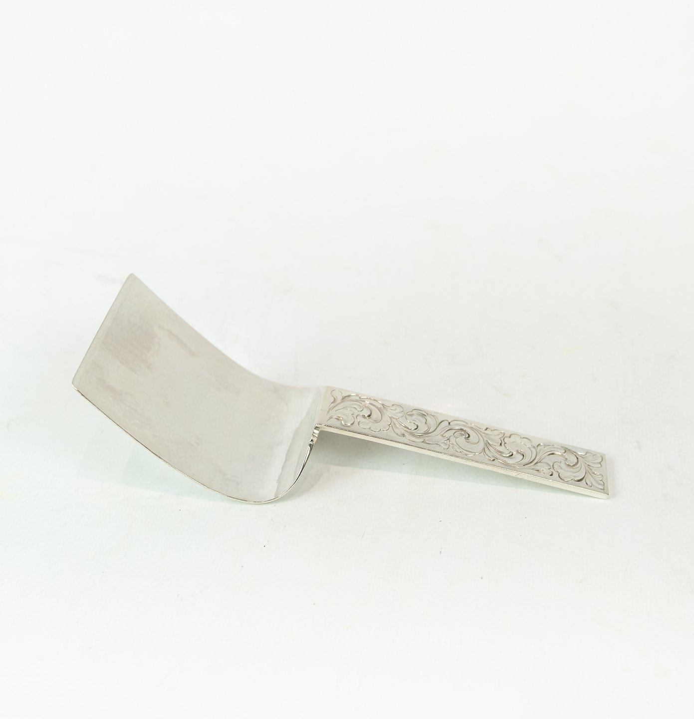 Spatel dekoreret med ciseleringer af tretårnet sølv.