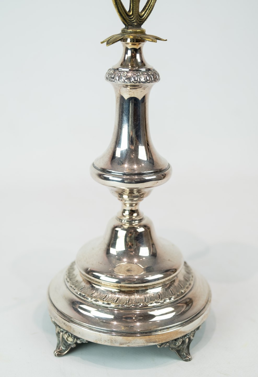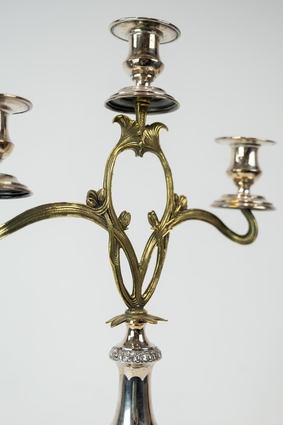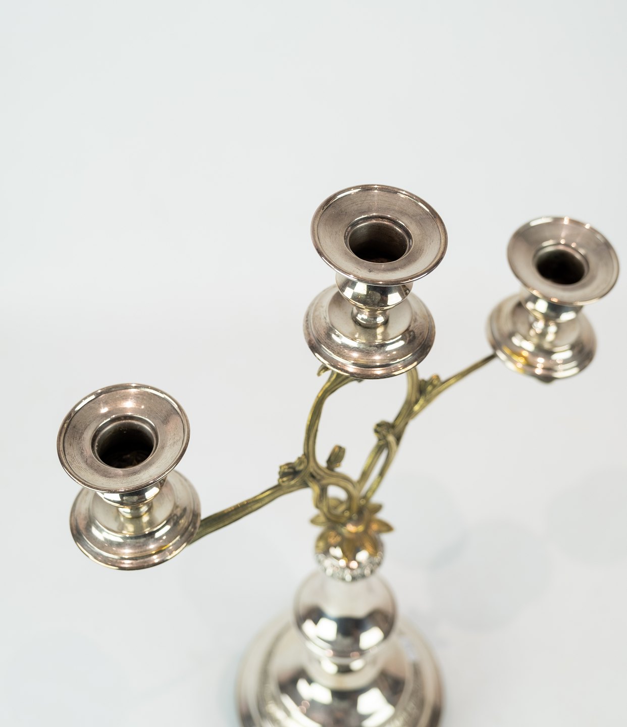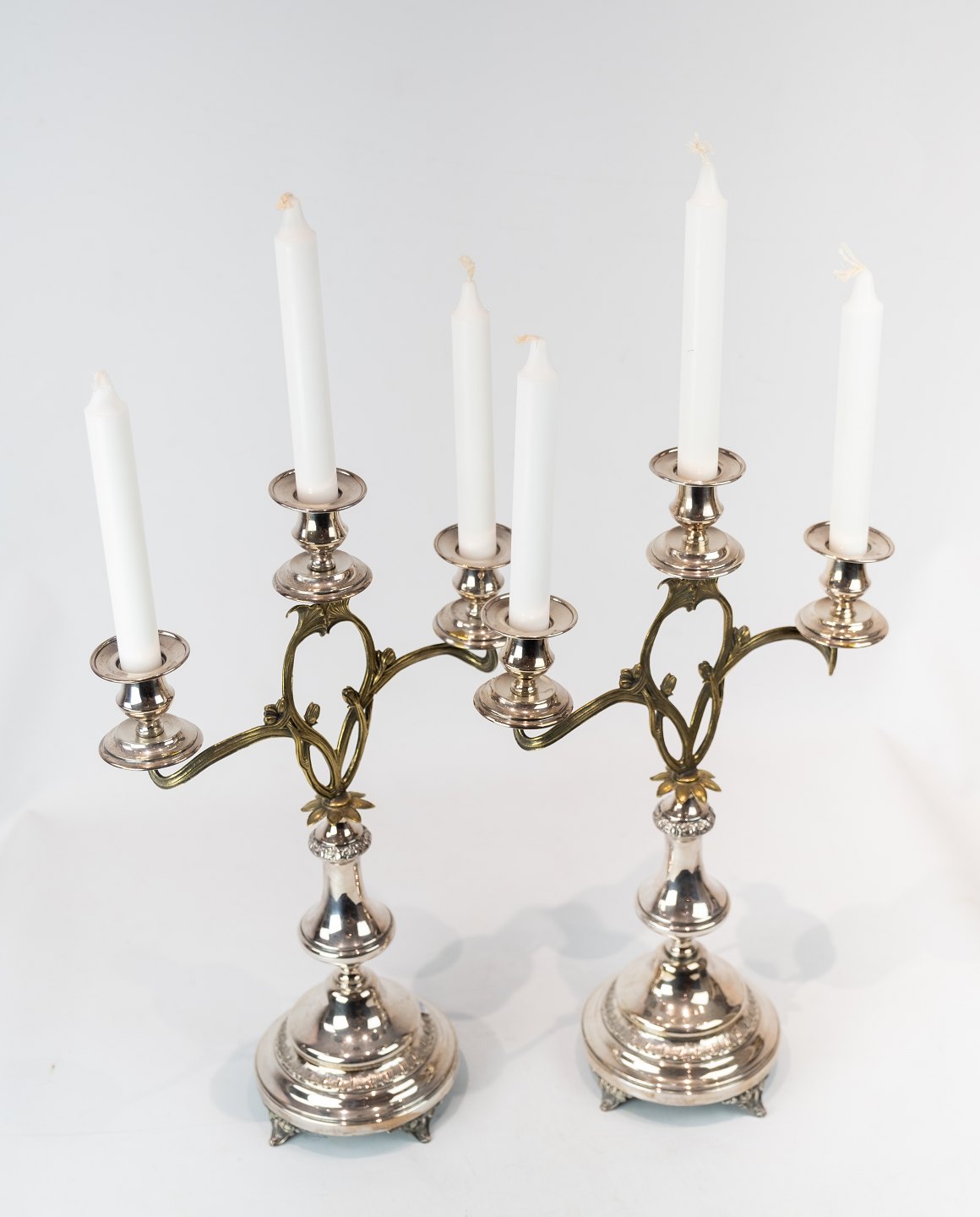 Et sæt danske forsølvede kandelabre med tre arme, i flot stand og i jugend stil fra 1920erne.