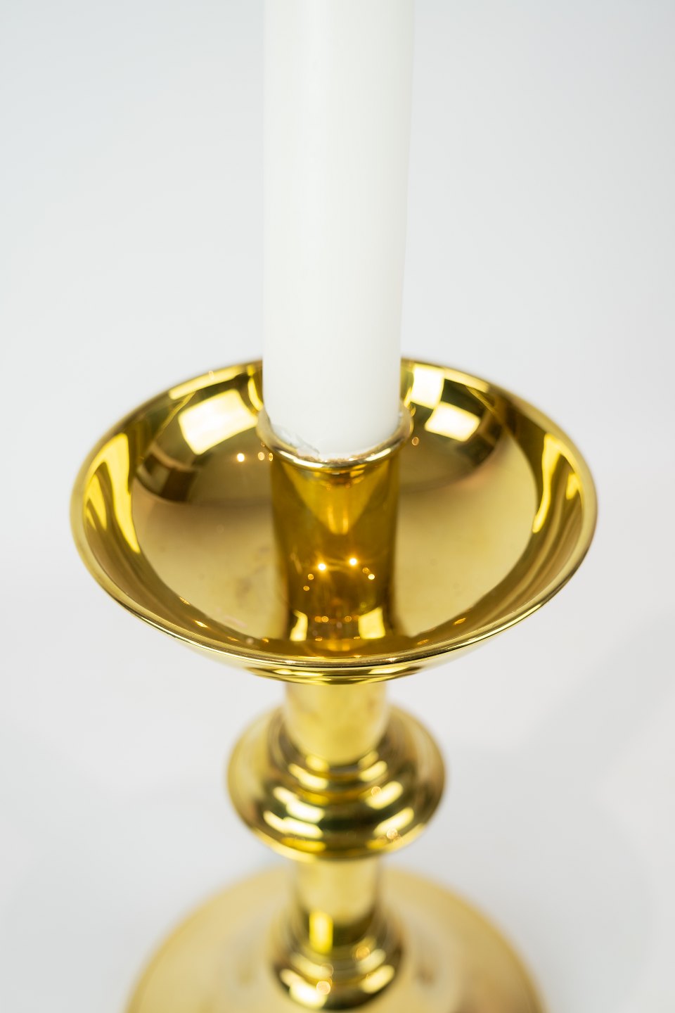 Sæt af to høje lysestager i messing, i flot stand og i jugend stil fra 1920erne.