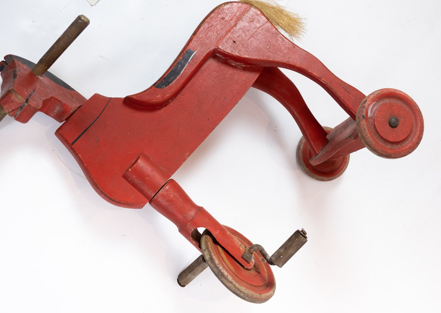Antique three wheeled bike horse in red color from the 1930s.
