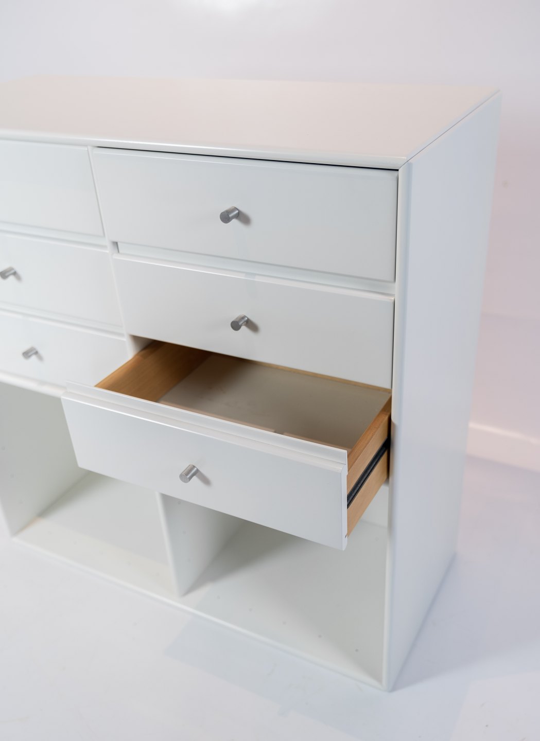 SoldWhite Montana module with 6 drawers and two larger rooms, designed by Peter J. Lassen.