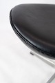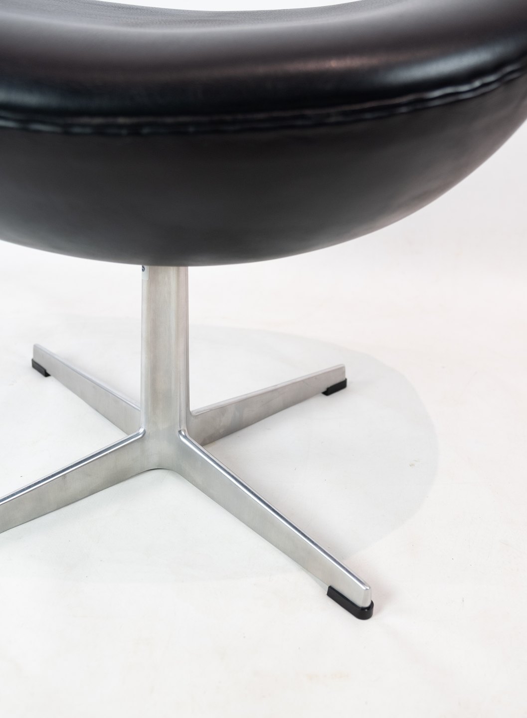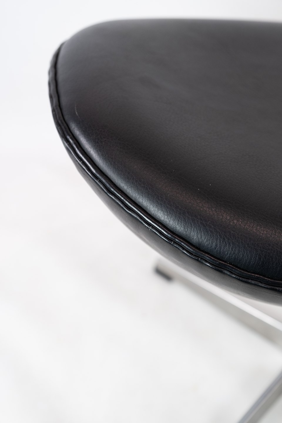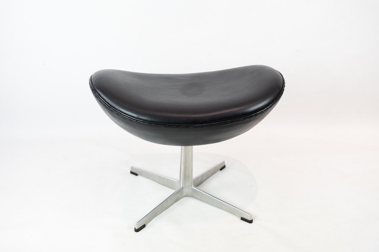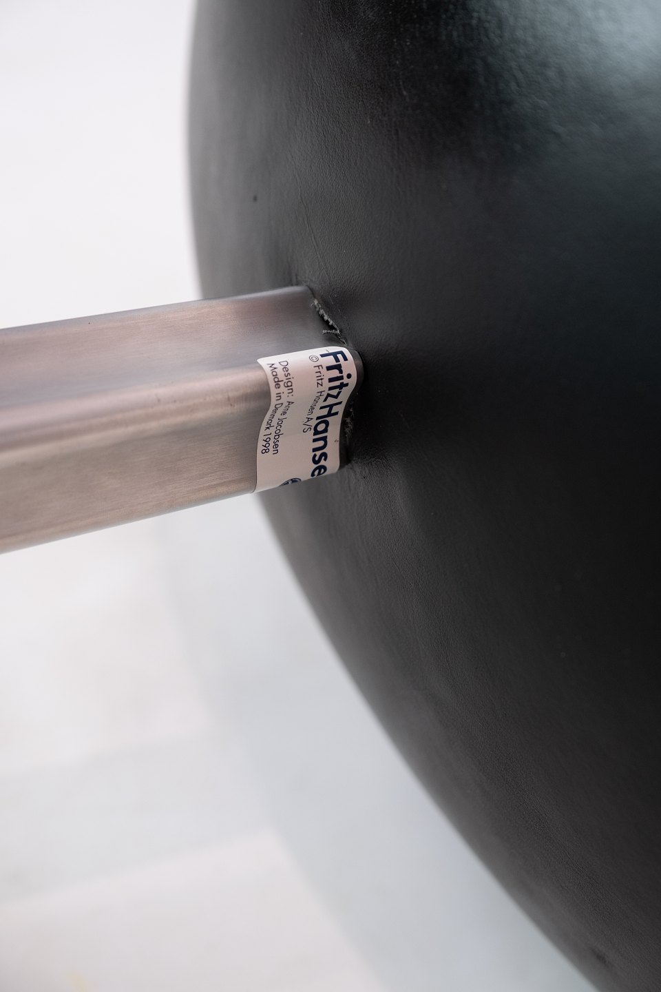 Stool for the Egg, model 3127, designed by Arne Jacobsen in 1958 and manufactured by Fritz Hansen. The Stool is originally upholstered with black leather and in great vintage condition.