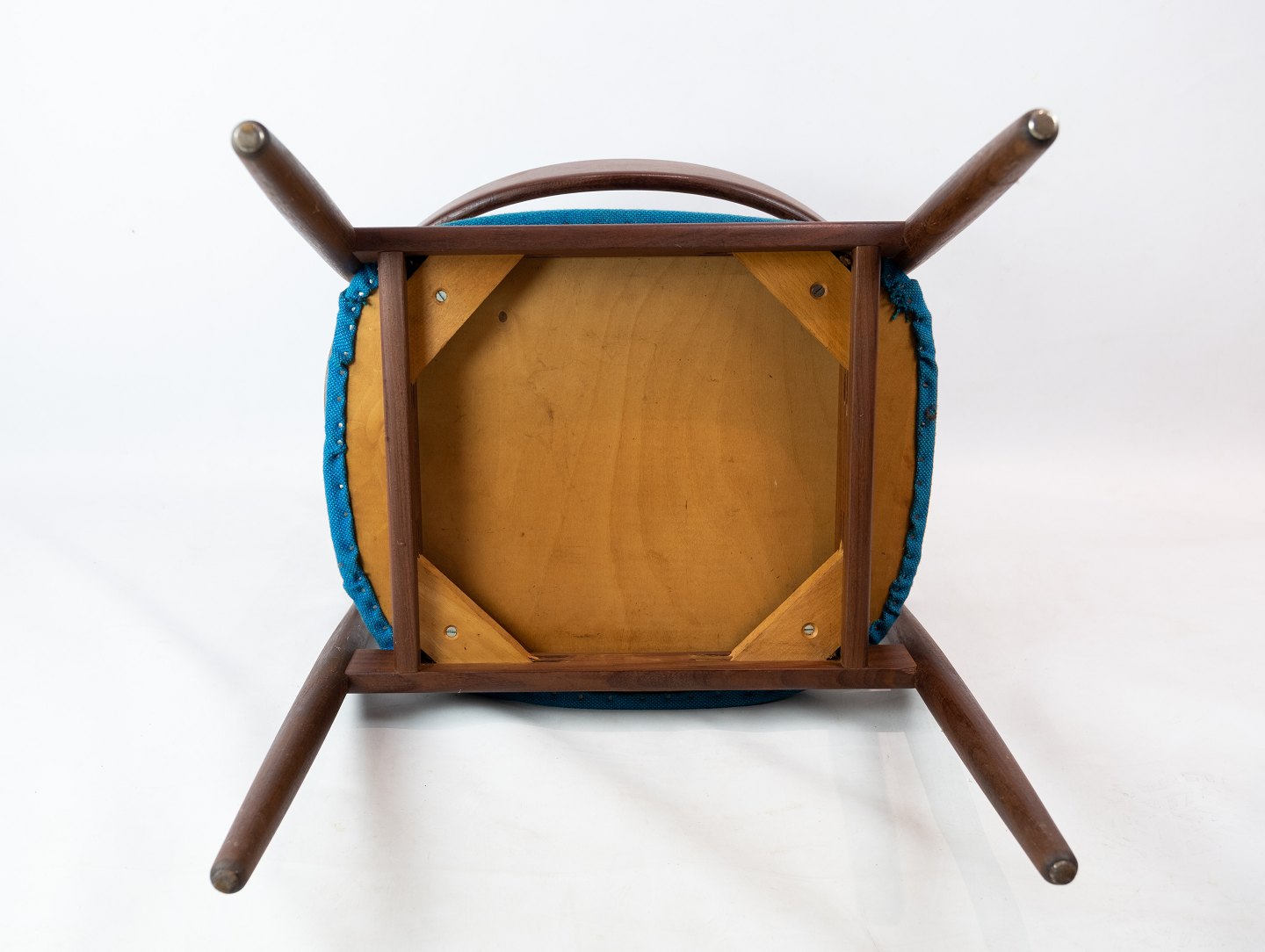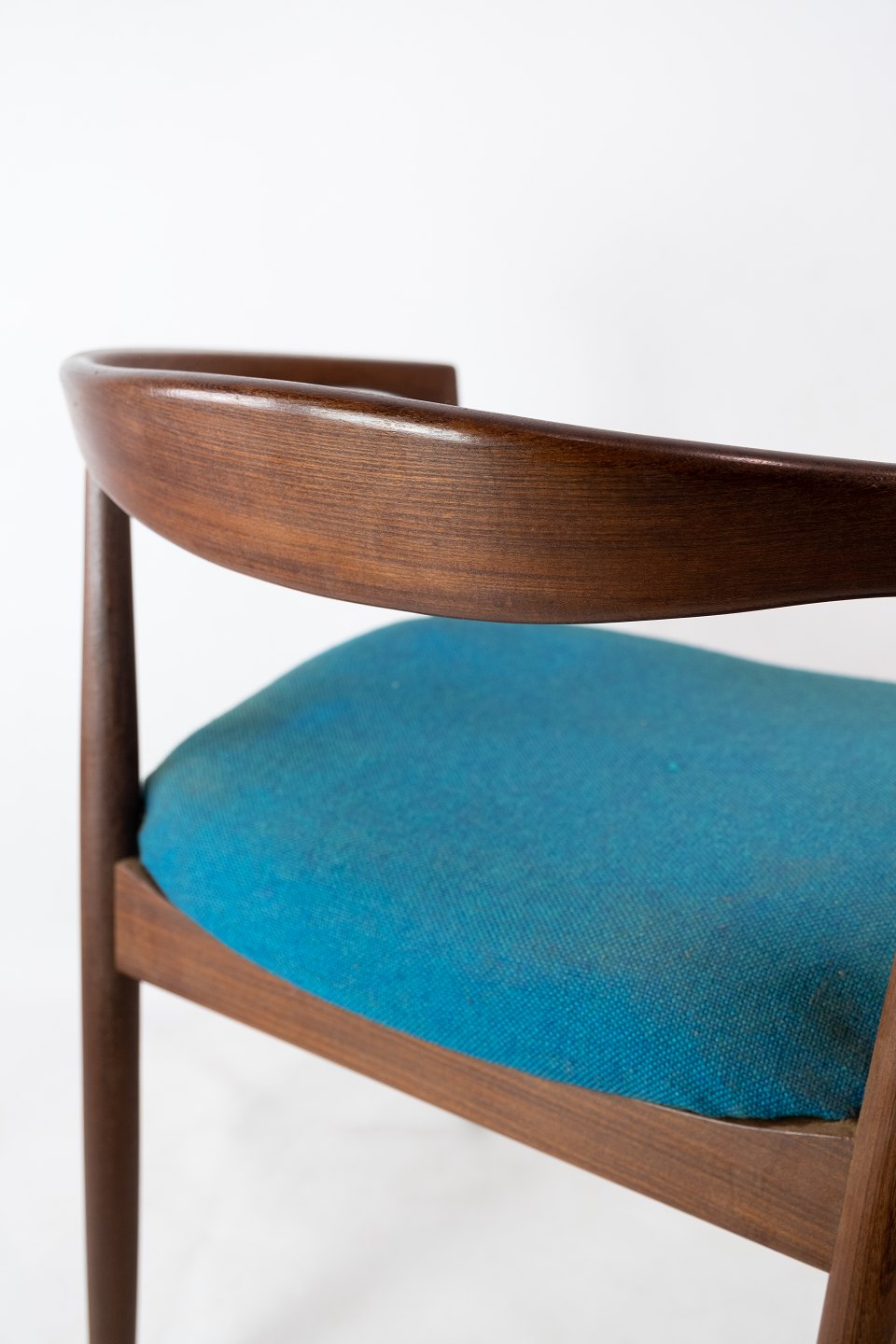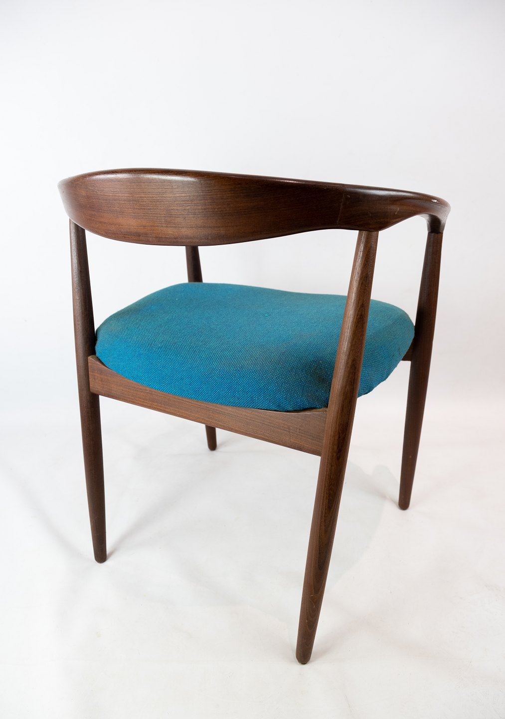 SolgtArmstol i palisander, model Troja, polstret med blåt stof designet af Kai Kristiansen fra 1960erne. Stolen er i flot brugt stand.