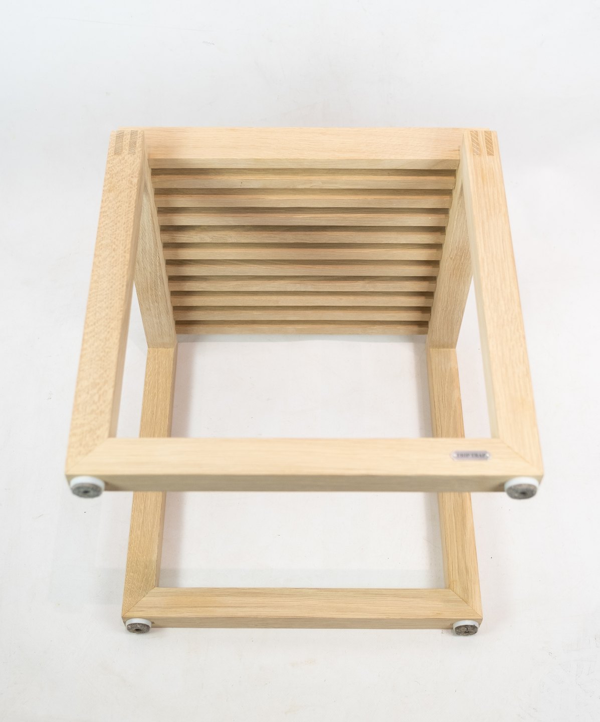SolgtTrip Trap Cutter-taburetten er et smukt eksempel på enkel og funktionel design. Fremstillet af kvalitets egetræ af høj kvalitet, tilføjer denne taburet et rustikt og naturligt touch til ethvert rum. Designet af den anerkendte danske designer Niels Hvass, bærer denne taburet præg af hans minimalistiske og tidløse tilgang til møbeldesign.