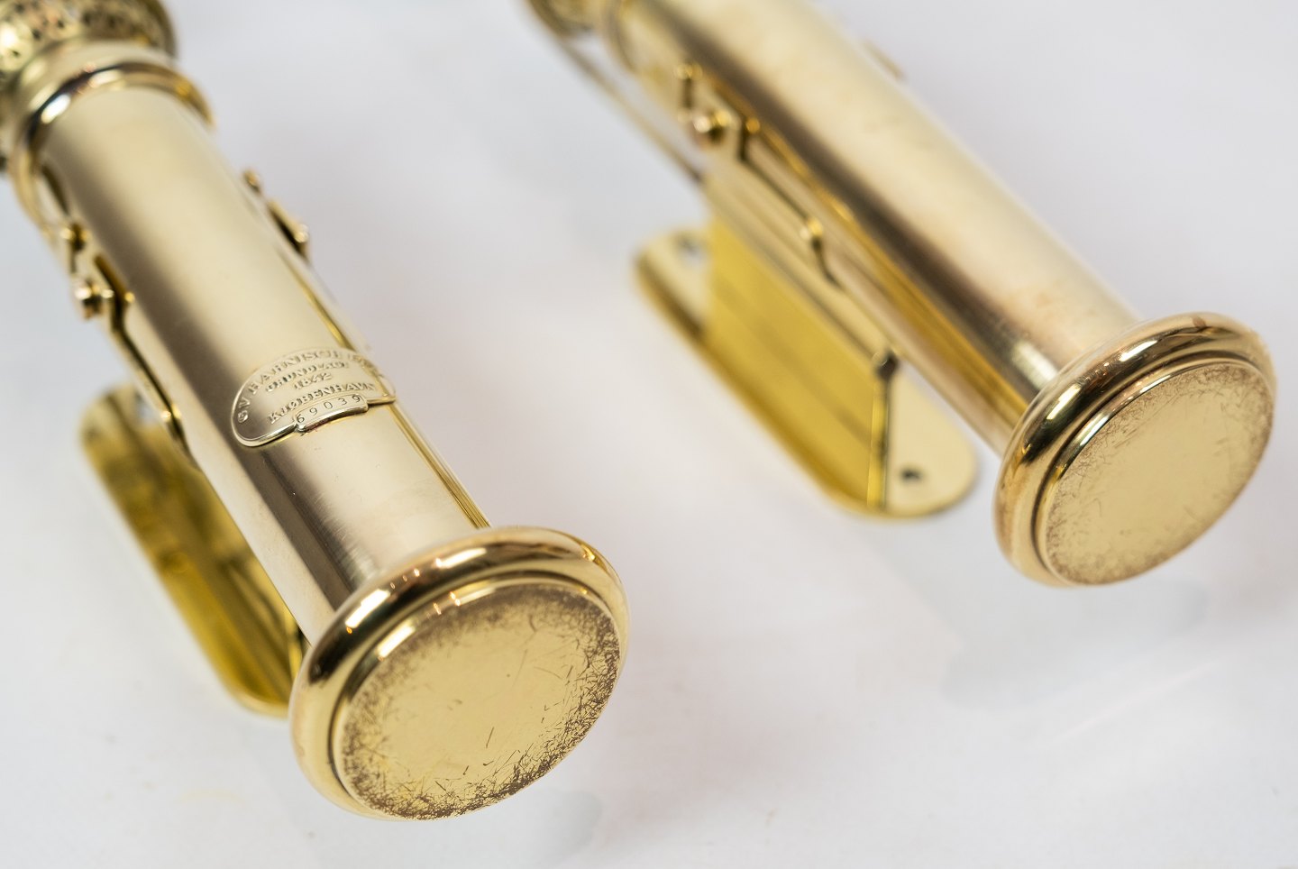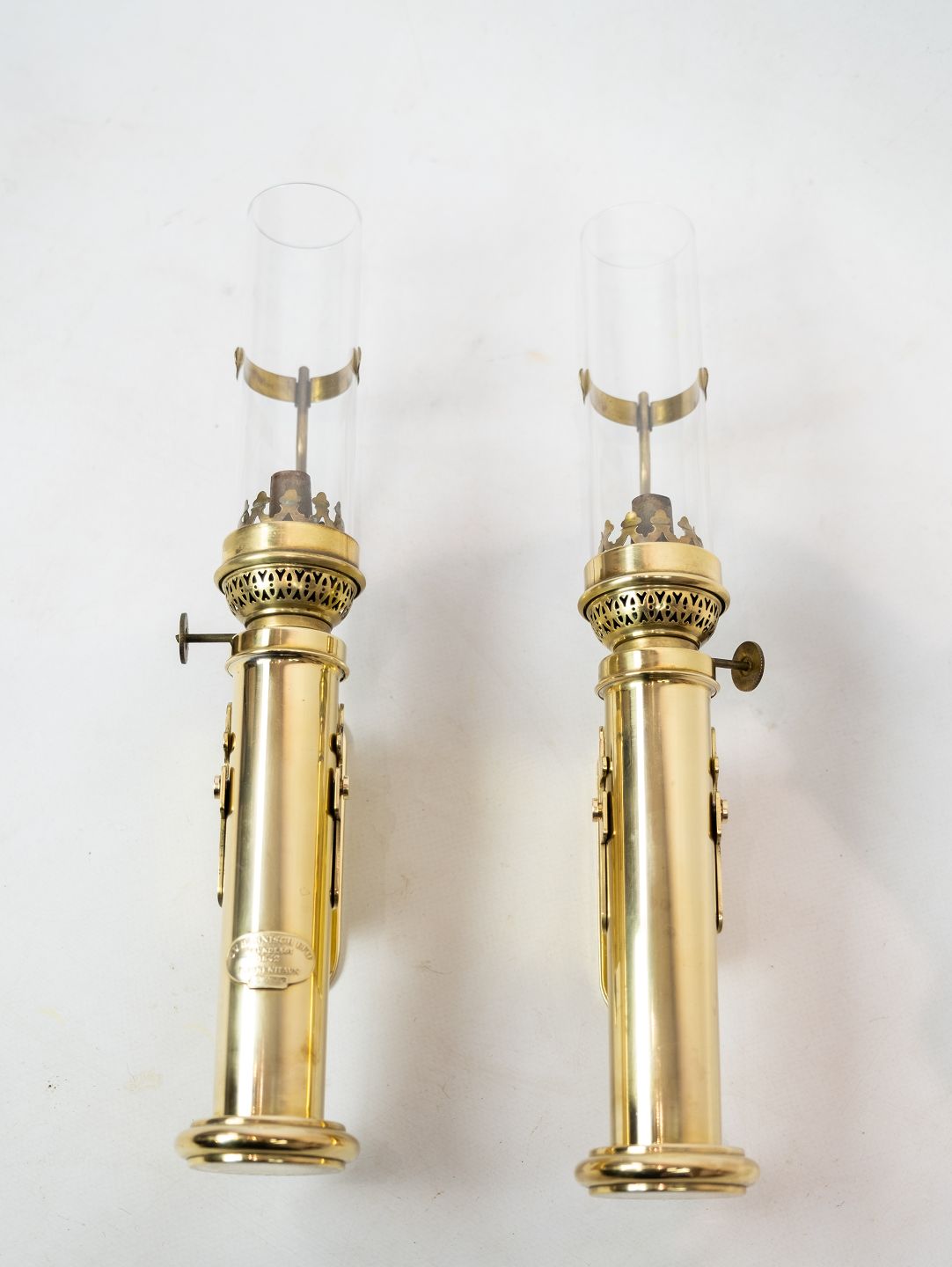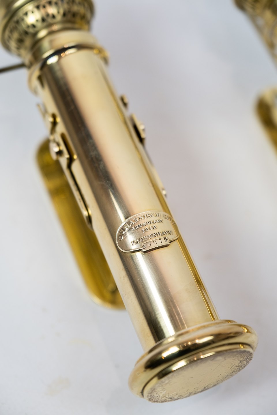 SolgtEt sæt vægstager i messing af G.V. Harnisch EFTF grundlagt i København 1842.