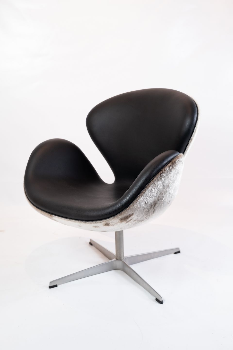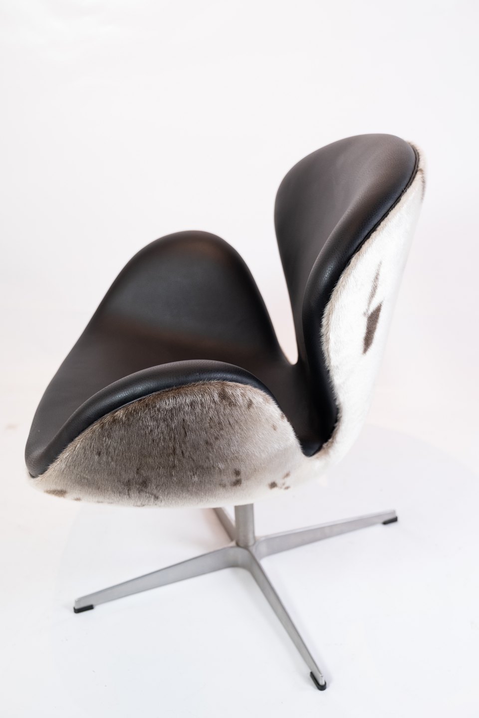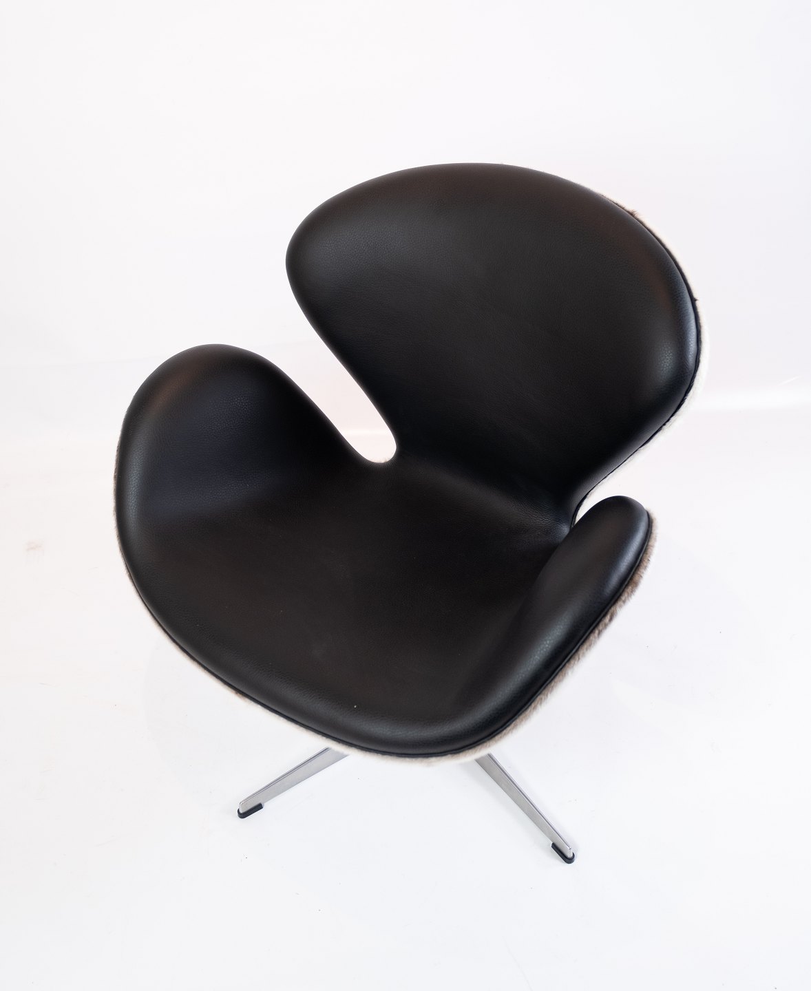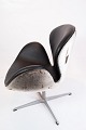 Swan chair, model 3320, designed by Arne Jacobsen in 1958 and manufactured by Fritz Hansen in 2002. The chair is with original upholstery in black leather and seal hide.