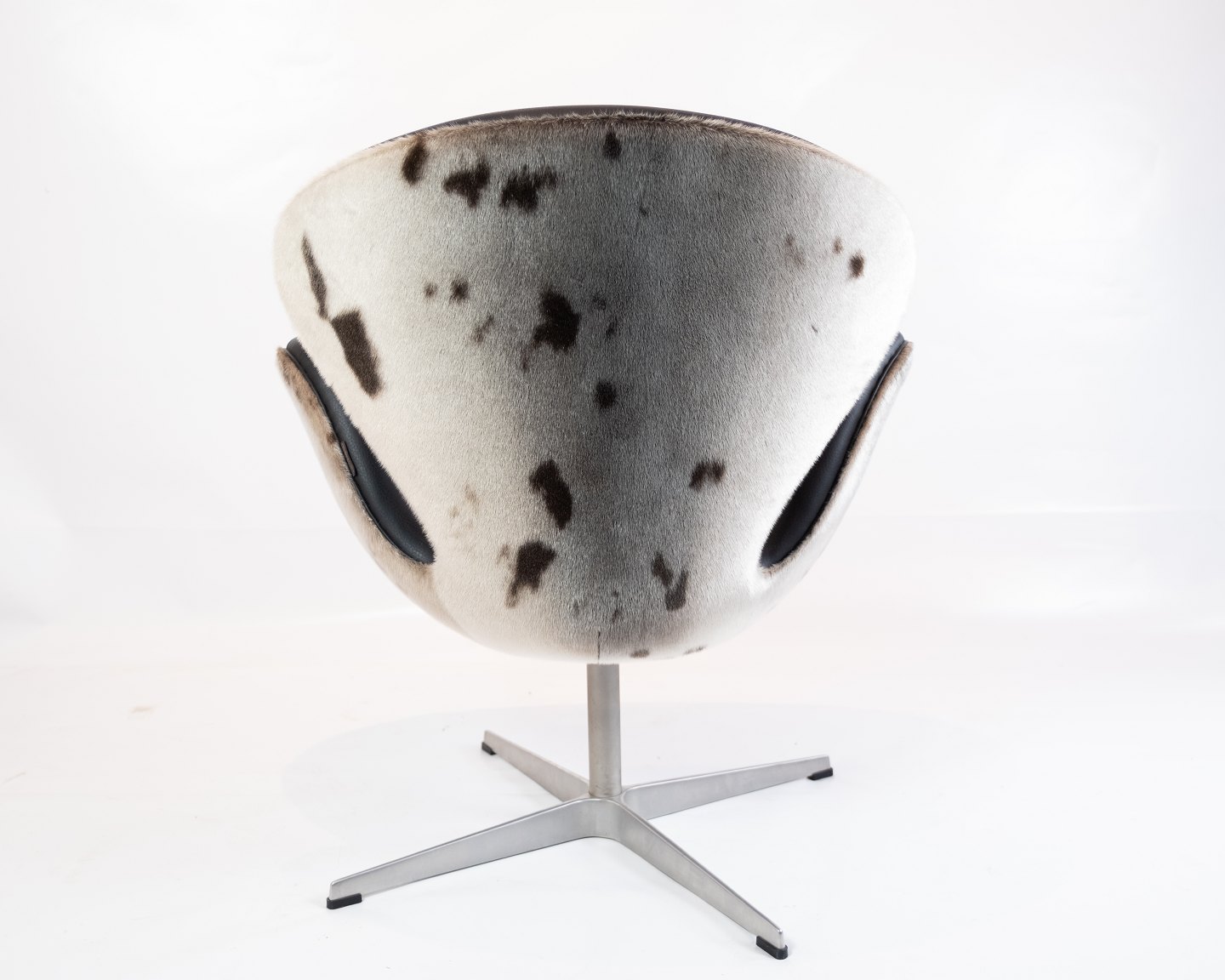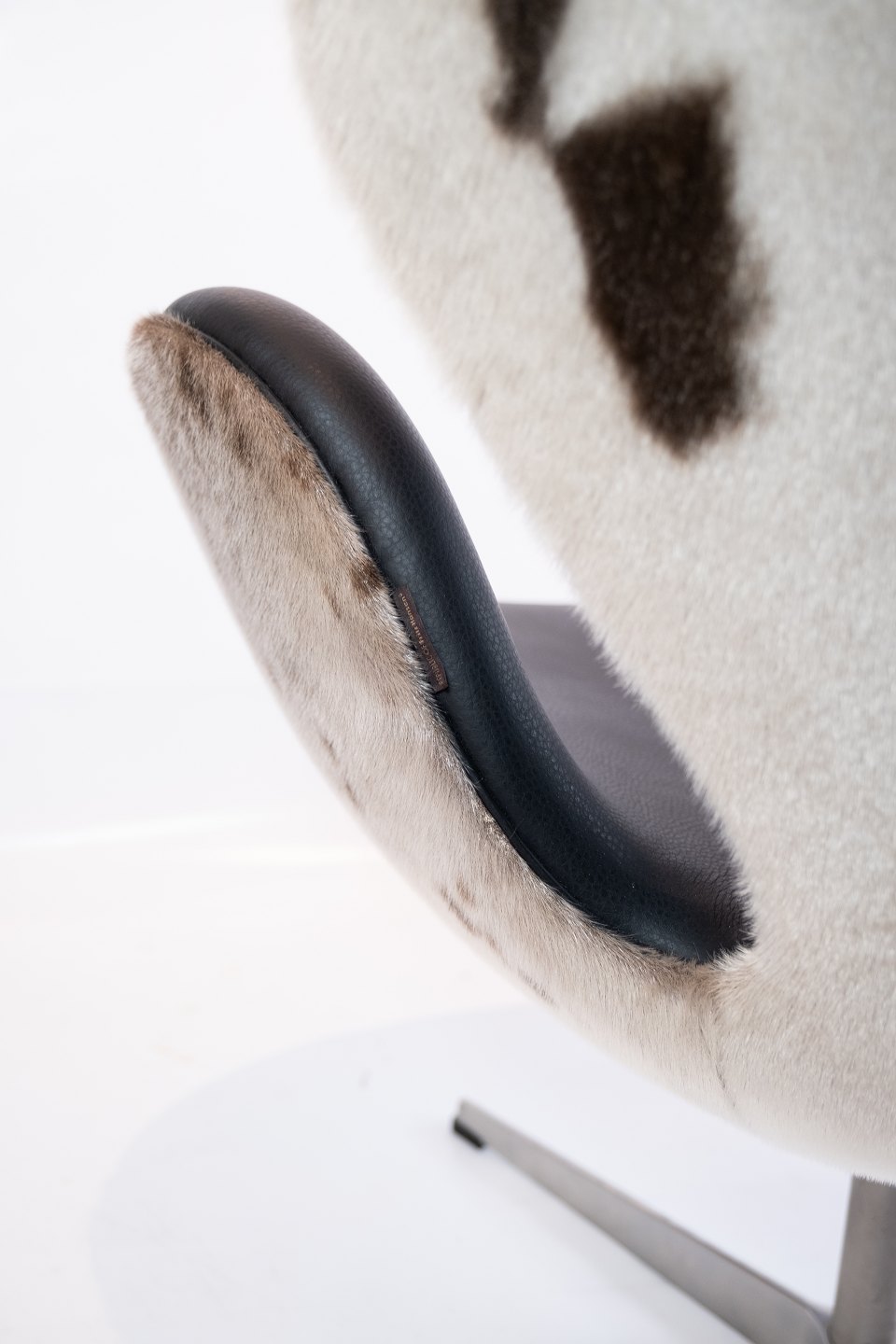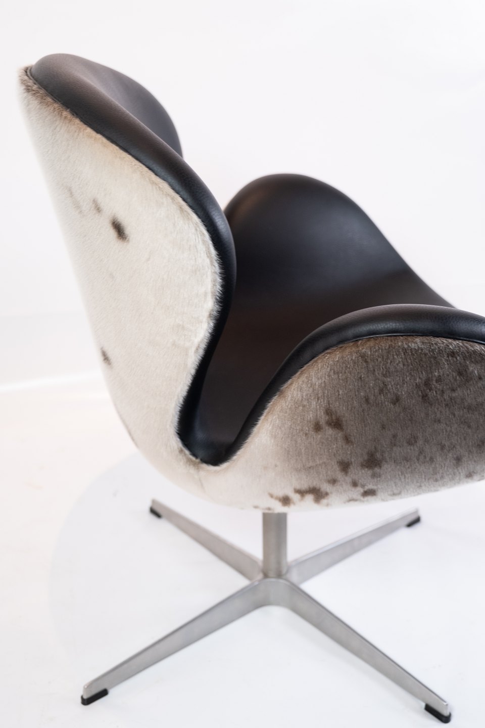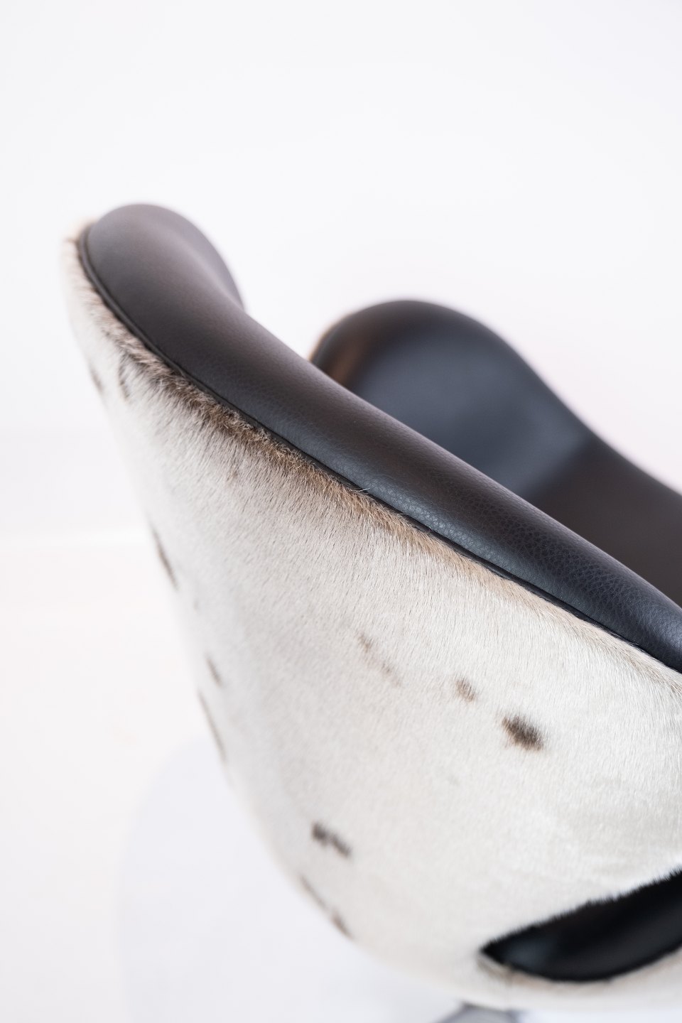 Swan chair, model 3320, designed by Arne Jacobsen in 1958 and manufactured by Fritz Hansen in 2002. The chair is with original upholstery in black leather and seal hide.