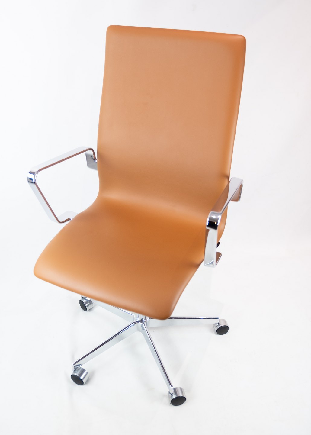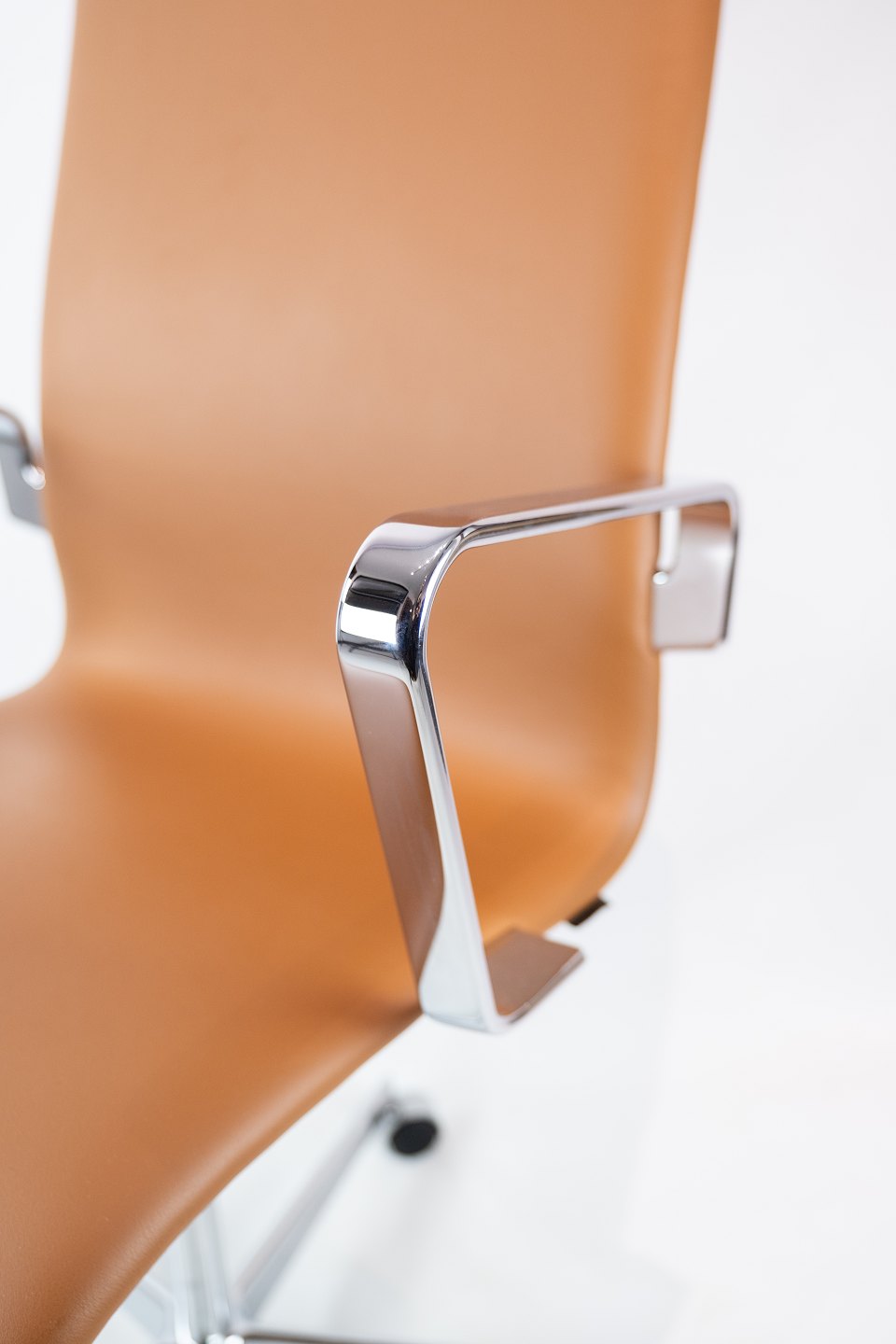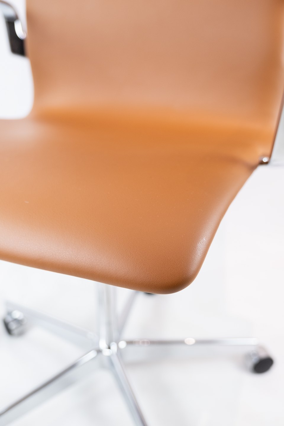 Oxford Classic kontorstol, model 3293C, med original polstring af cognac læder, designet af Arne Jacobsen i 1963 og fremstillet af Fritz Hansen.