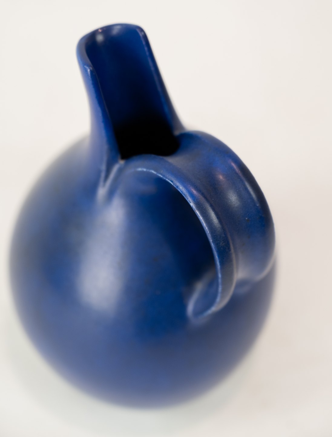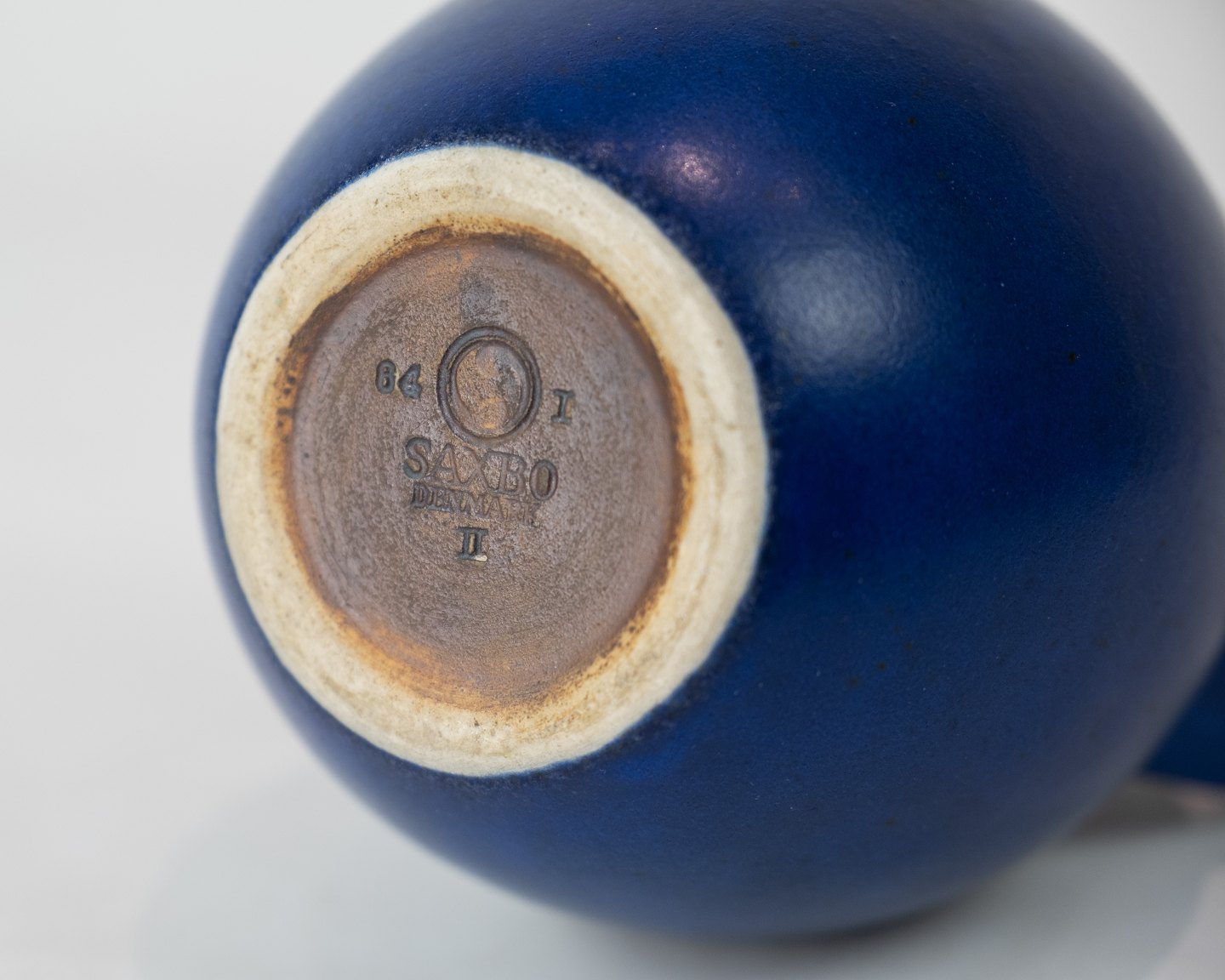 SolgtKeramik spaltekande i mørkeblå glasur af Saxbo og nummeret 86. Kanden er i flot brugt stand.