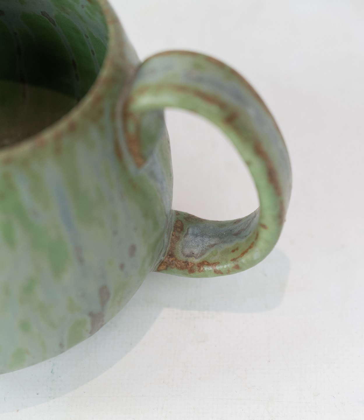 SolgtKeramik kande med lysegrøn glasur af Arne Bang og nummereret 406. Kanden er i flot brugt stand.
