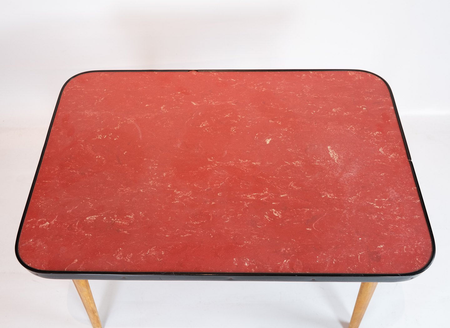 Side table with red laminate of danish design from the 1960s. The table is in great vintage condition.