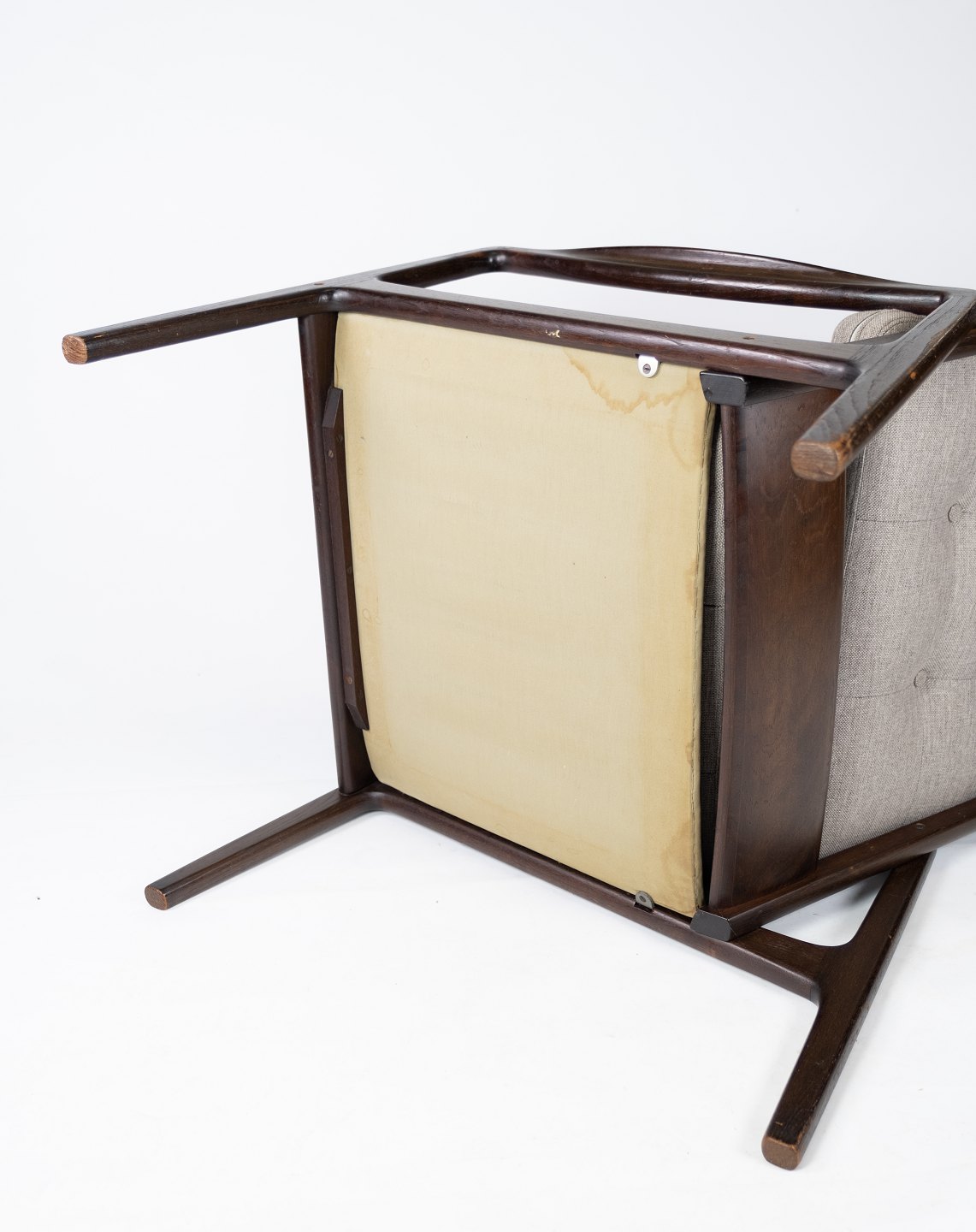 This Easy Chair in teak and newly upholstered gray wool cover, designed by Kai Kristiansen from the 1960s, is a timeless piece of furniture that exudes comfort and elegance. The chair is a perfect combination of aesthetics and functionality and will add a touch of Scandinavian design heritage to any interior.
