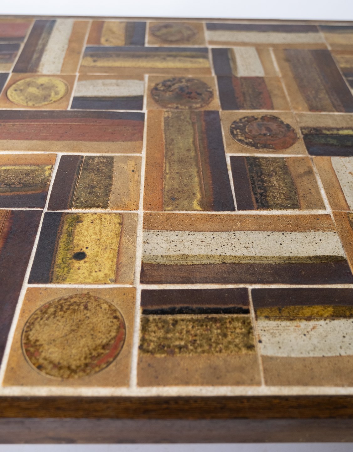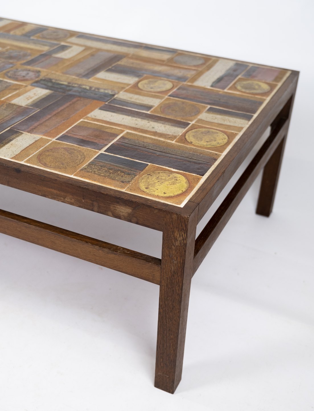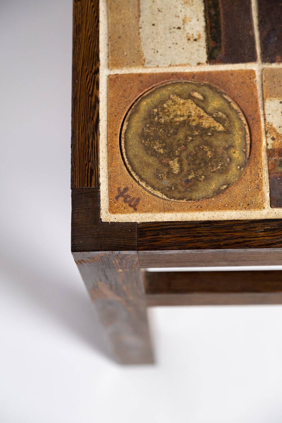 SolgtSofabord i palisander og med kakler, designet af Tue Poulsen fra 1970erne. Bordet er i flot brugt stand.
