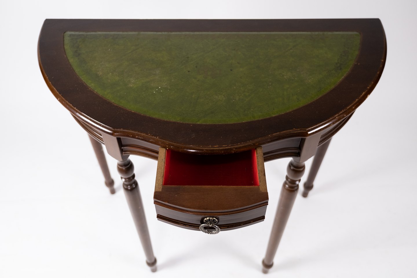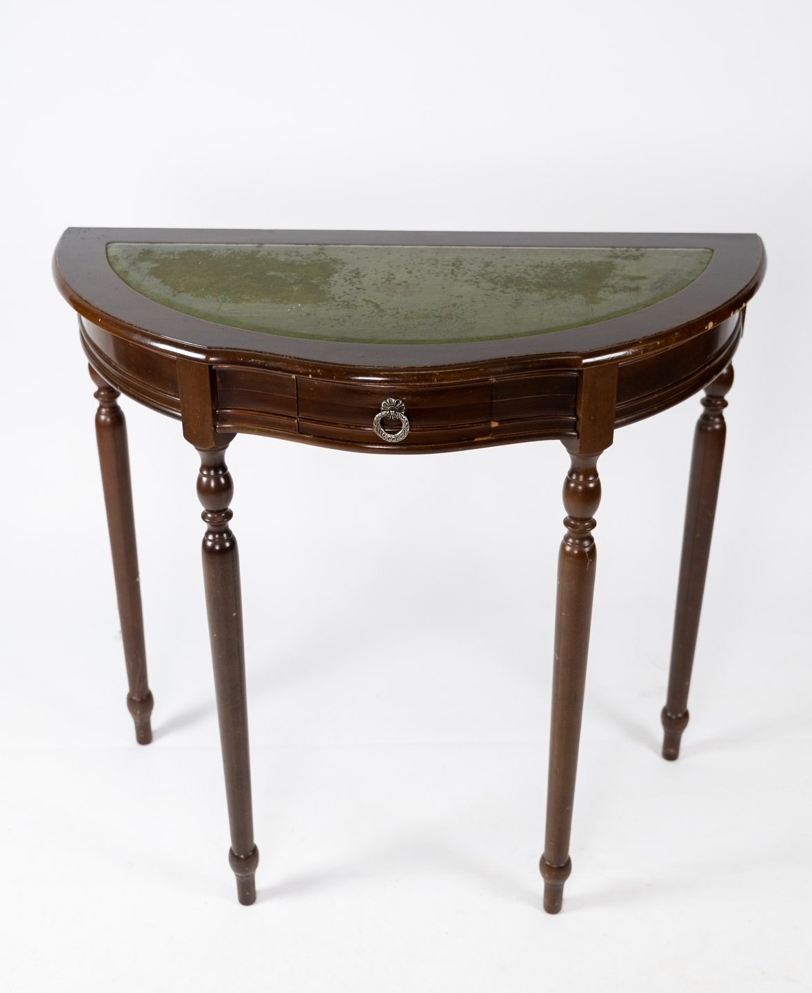 SolgtAntikt konsolbord af mahogni med læder på top plade i flot brugt stand fra 1930erne.
