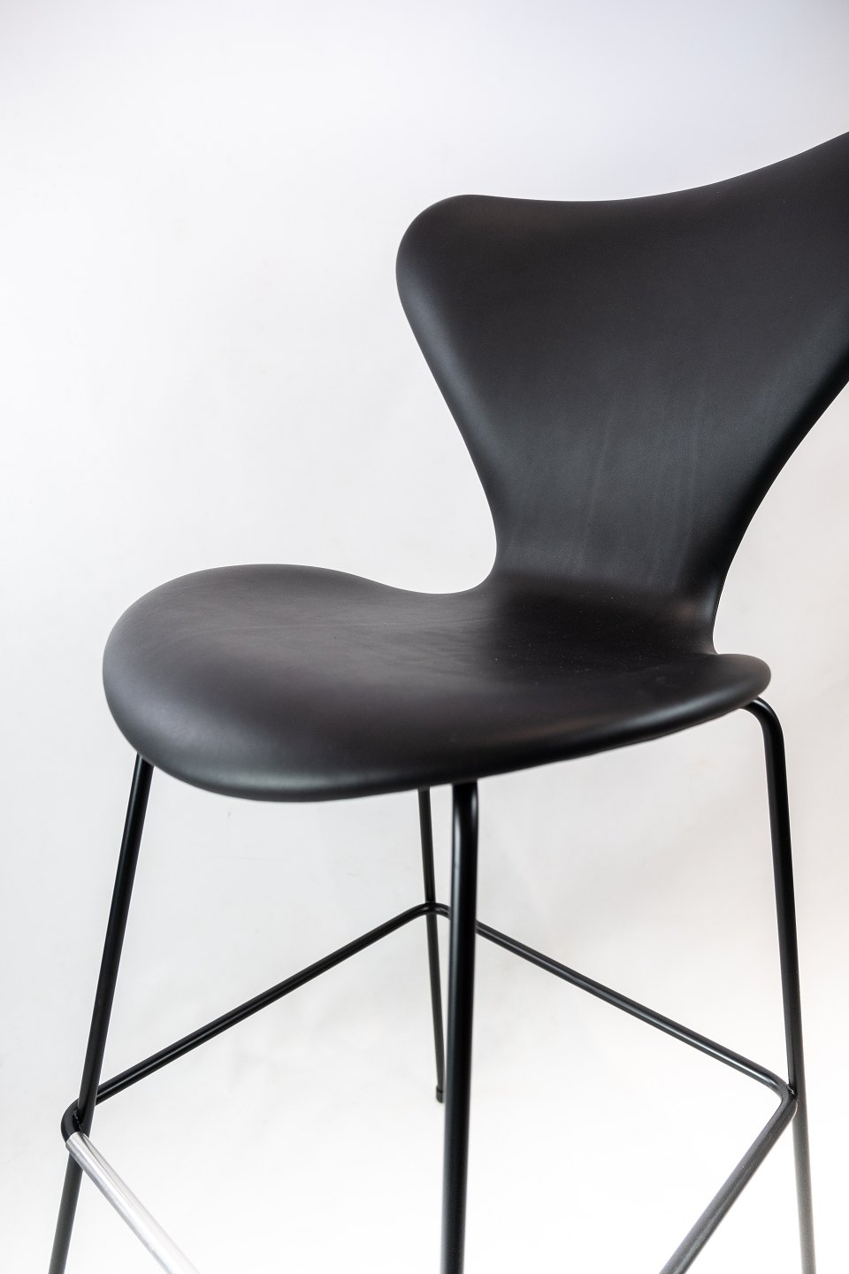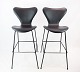 SolgtEt sæt Syver barstole, model 3187/3197, af Arne Jacobsen og Fritz Hansen. Stolene er med original polstring af sort læder.