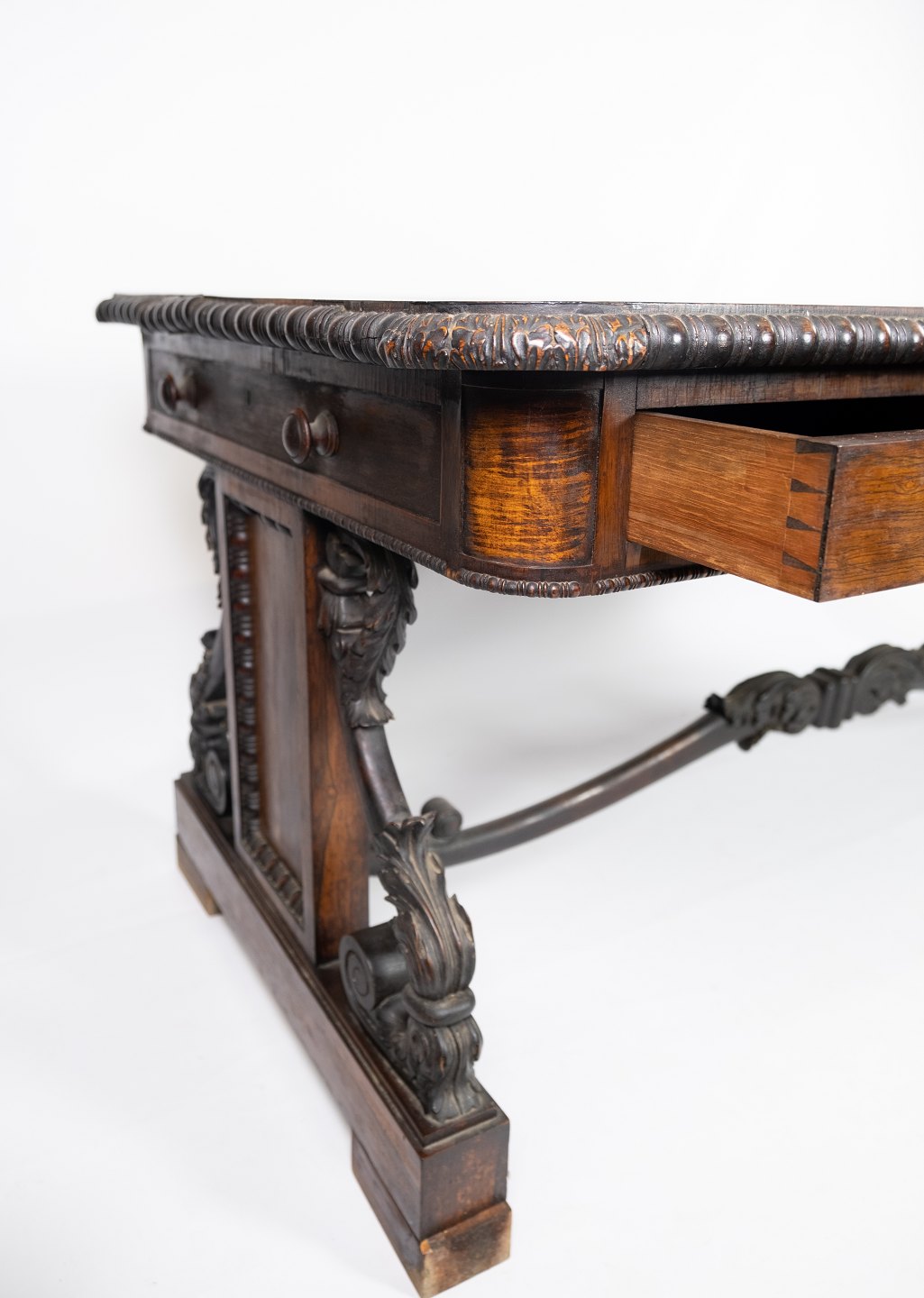 Antique desk of rosewood with carvings and in great antique condition from the 1840s.