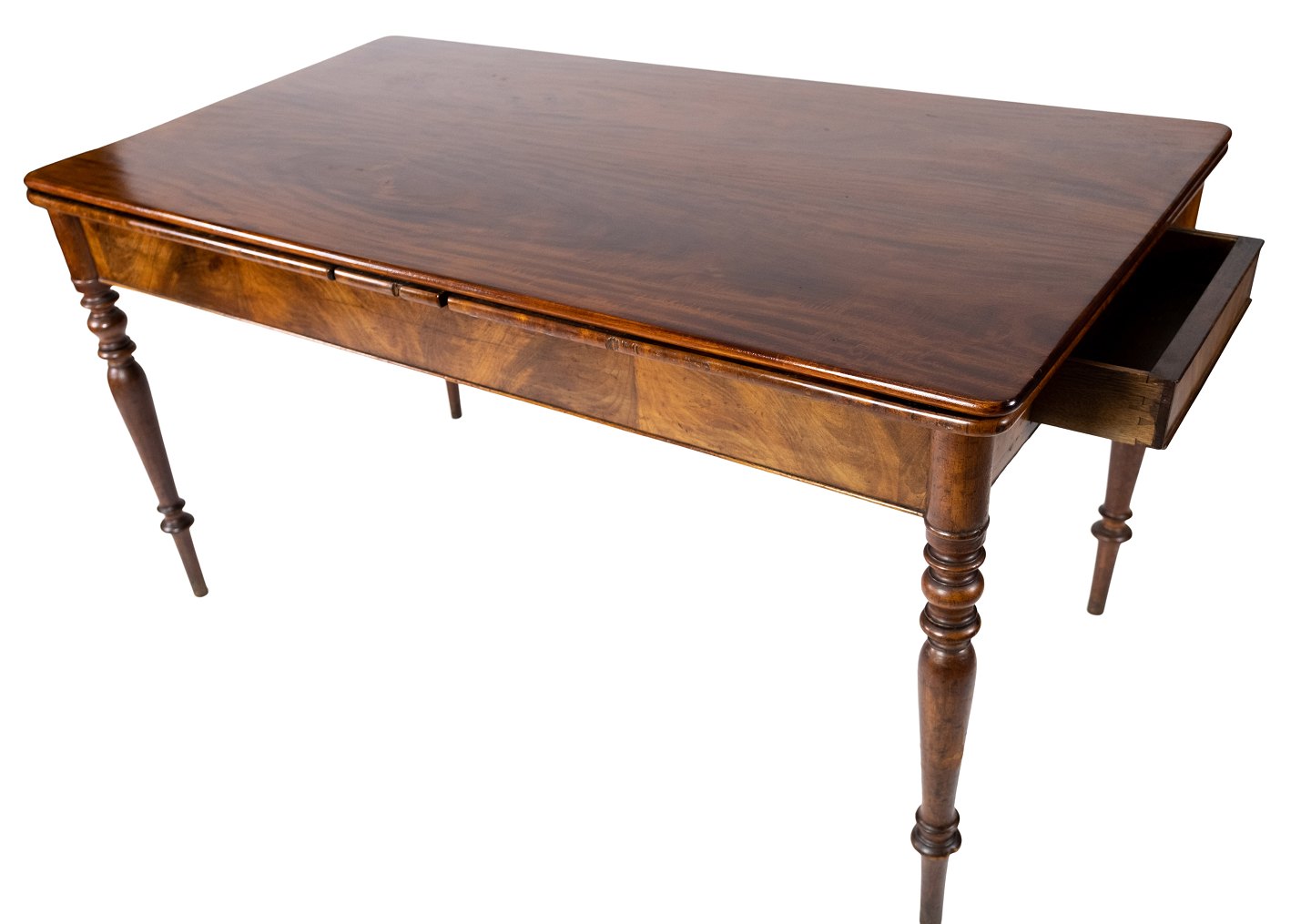 Late Empire desk/dining table in mahogany with extensions, and in great antique condition from the 1840s.