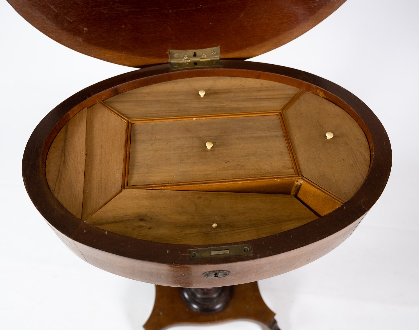 Work/sewing table of mahogany with storage and in great vintage condition from the 1910s.