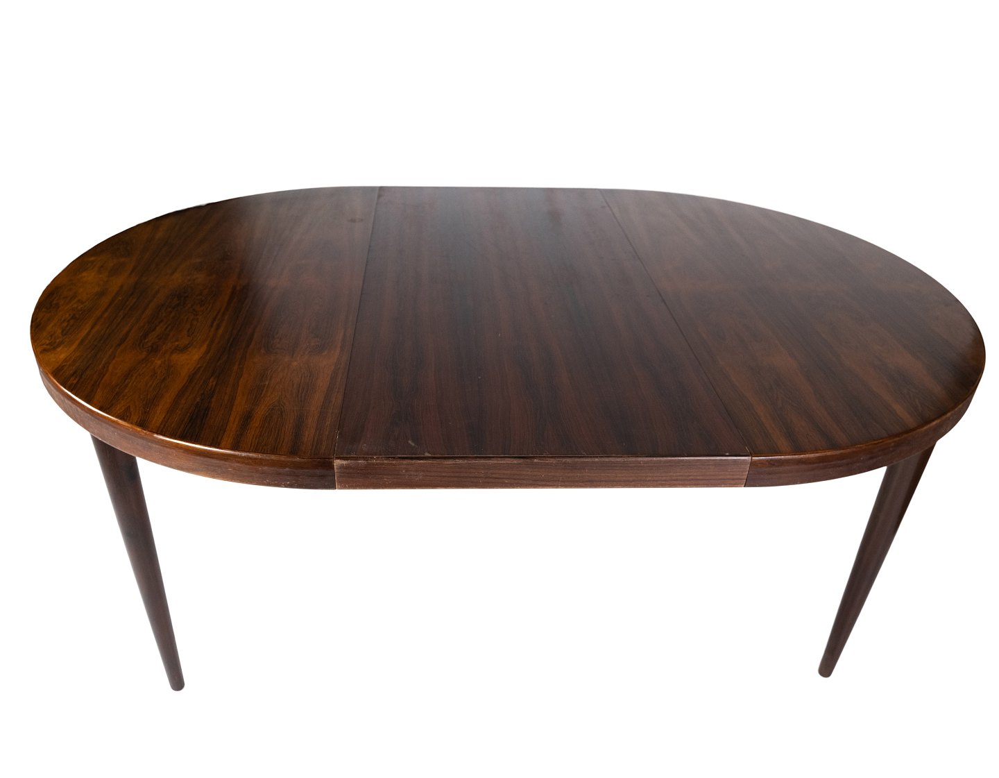 SolgtSpisebord i palisander designet af Omann Junior fra 1960erne. Bordet er i flot brugt stand og med tre tilhørende tillægsplader.