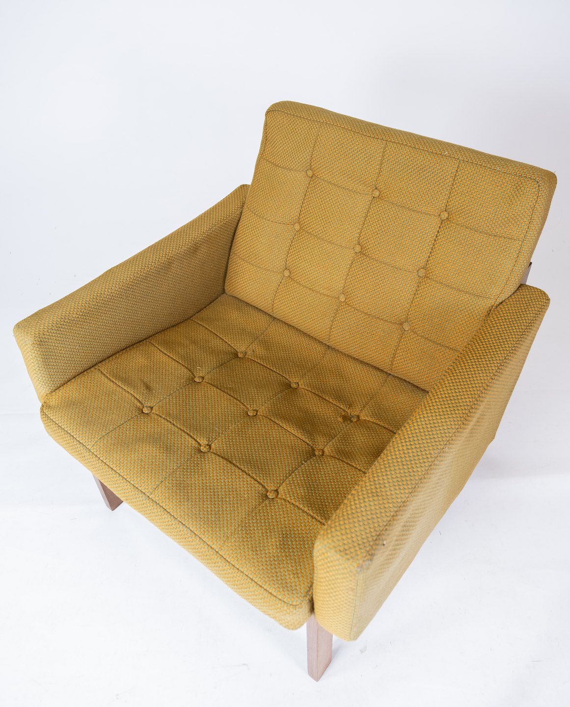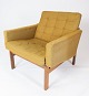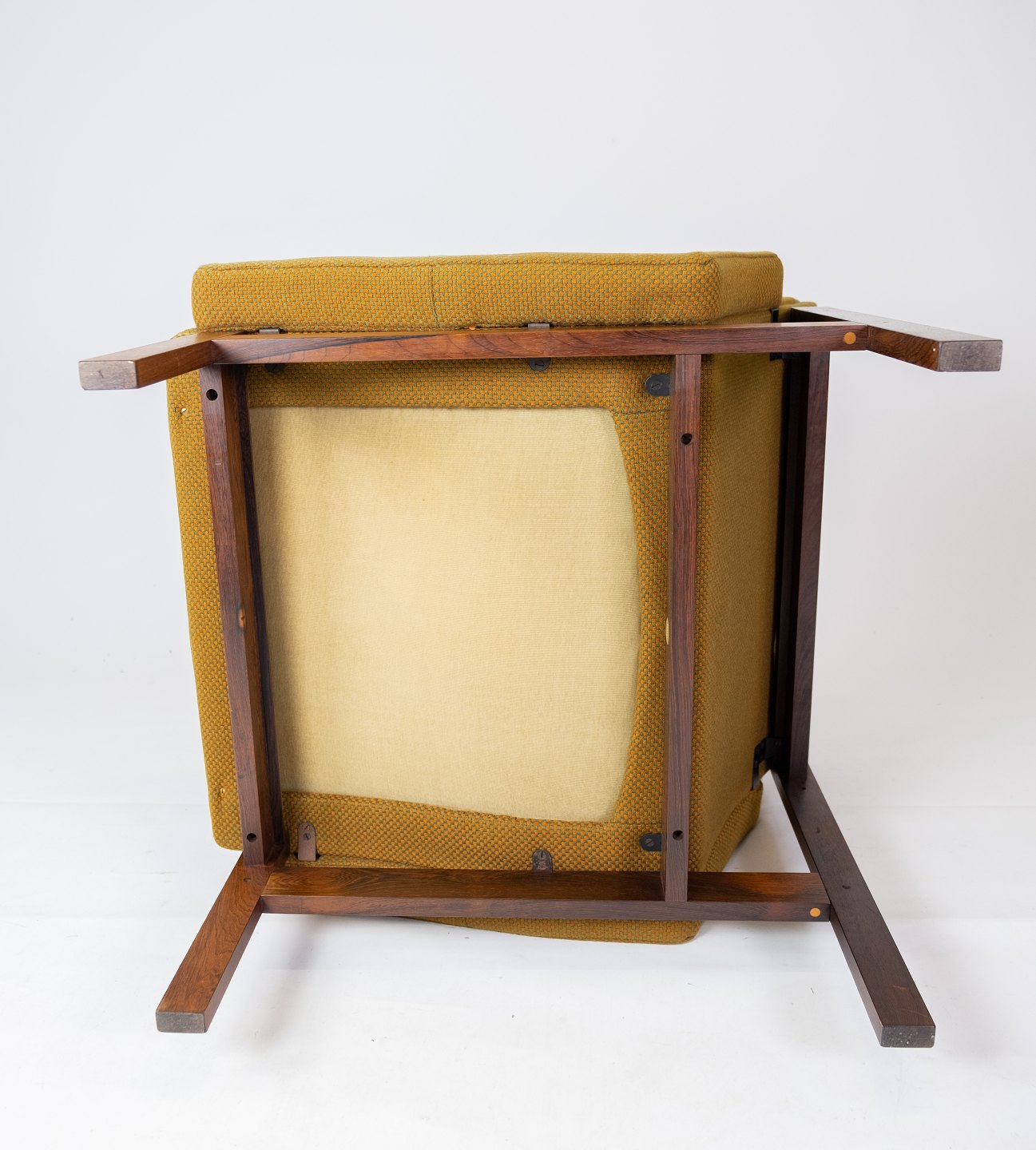 Manufactured by France & Søn, a renowned Danish furniture manufacturer, these chairs are in nice used condition, which is testament to their durability and timeless design. With their beautiful rosewood and deep dark green fabric, these chairs will make an elegant and stylish addition to any living room or reading nook.
