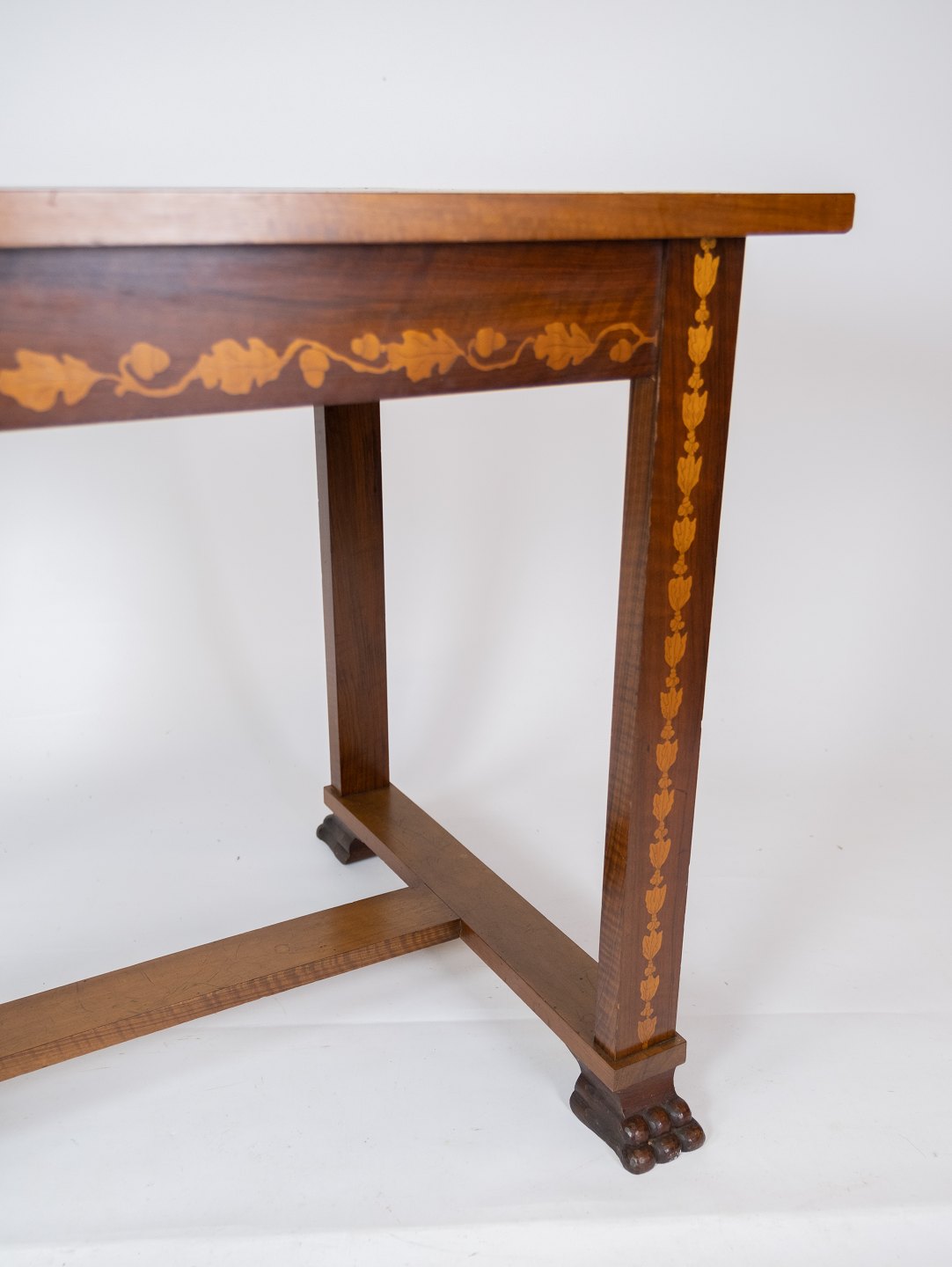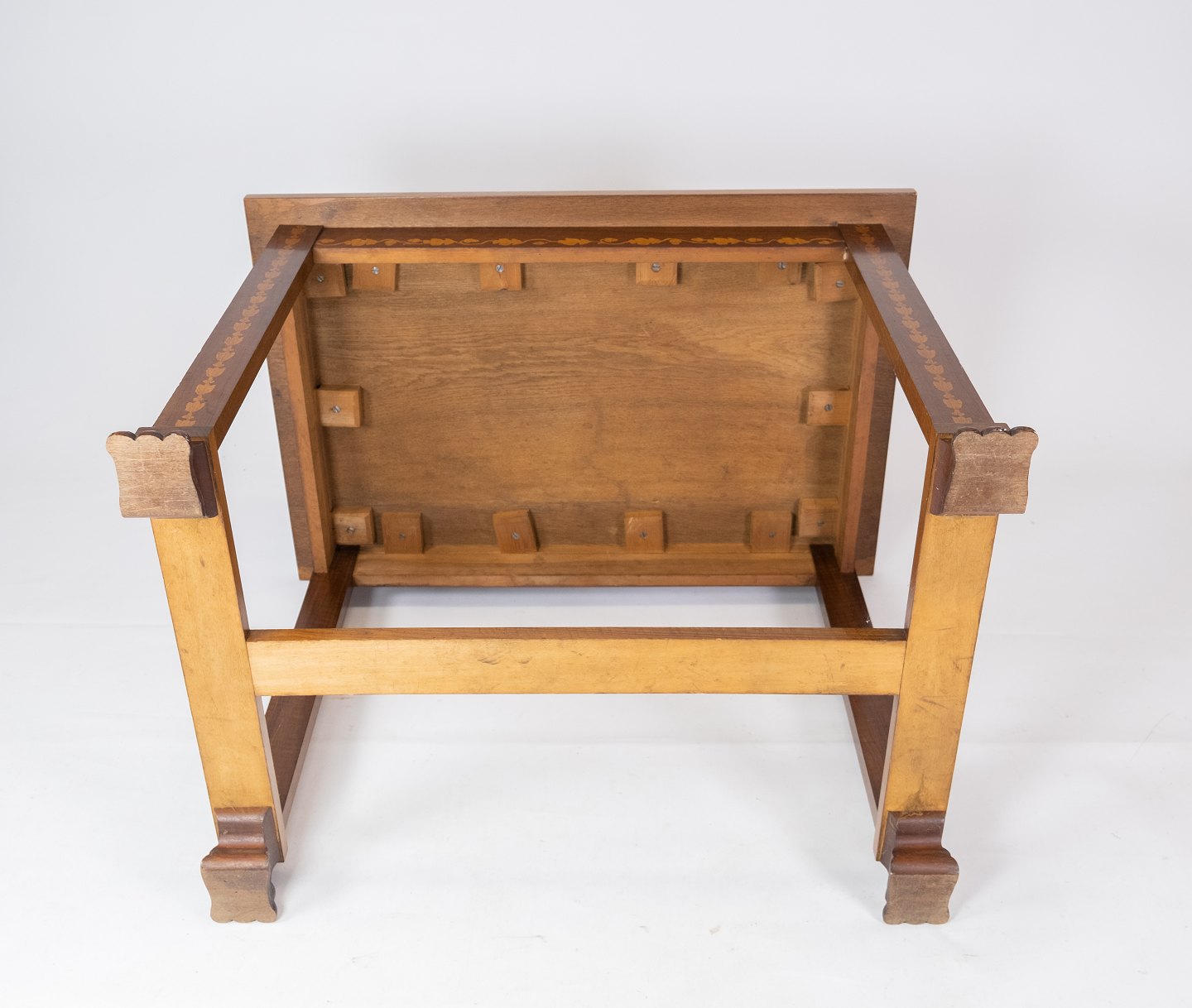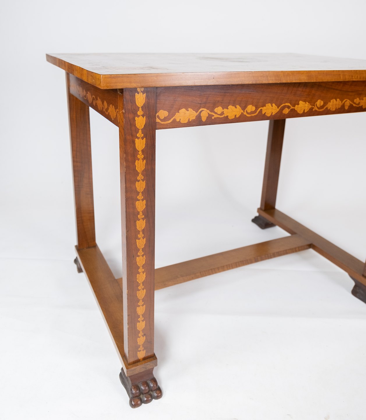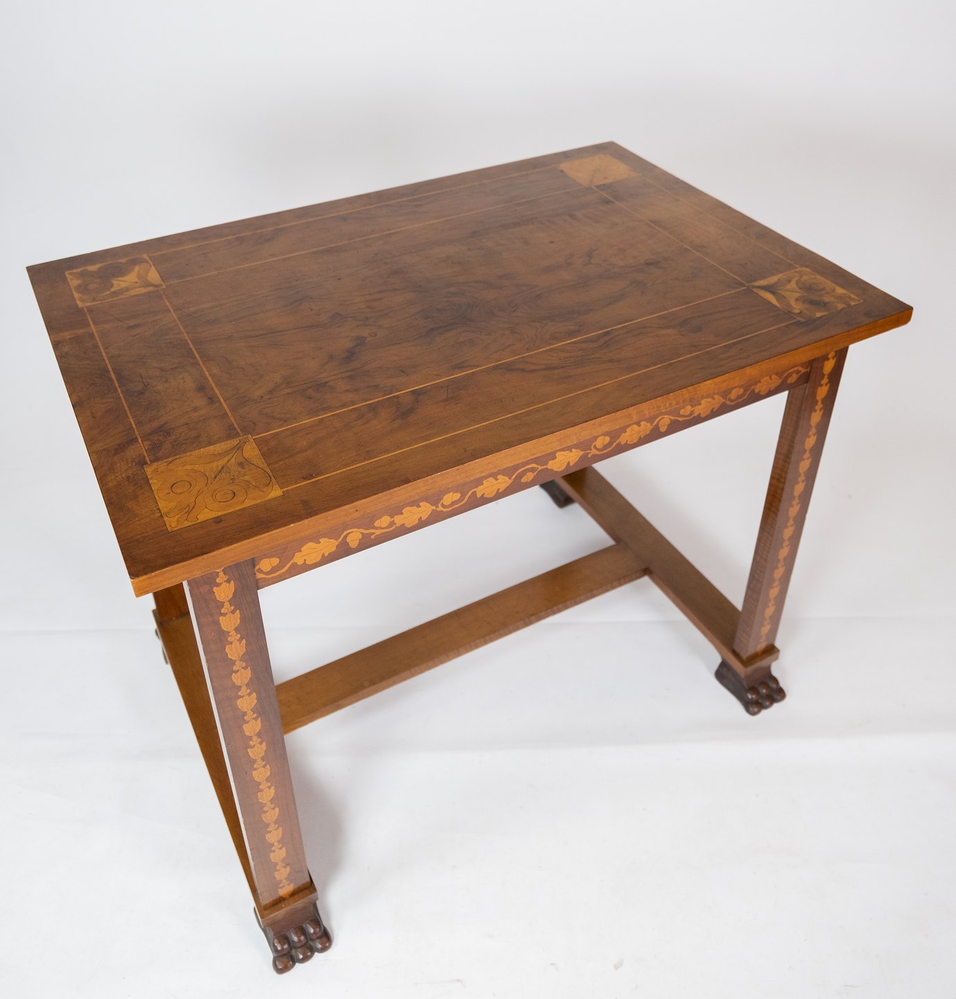 Bord af valnød med intarsia, i flot antik stand fra omkring 1910.