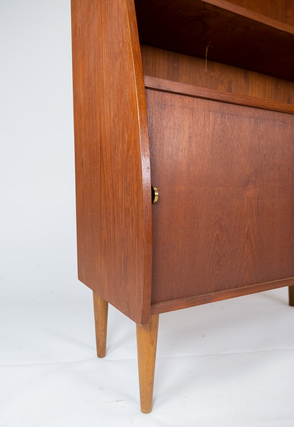 This bookcase represents the timeless elegance and functionality that characterizes Danish furniture design from this era. The teak wood adds warmth and character to the room and creates a cozy atmosphere. The nice used condition gives the bookcase a unique patina and history that only adds to its charm and appeal. With its practical storage space and beautiful appearance, this bookcase will make an impressive and functional addition to any mid-20th century decor.