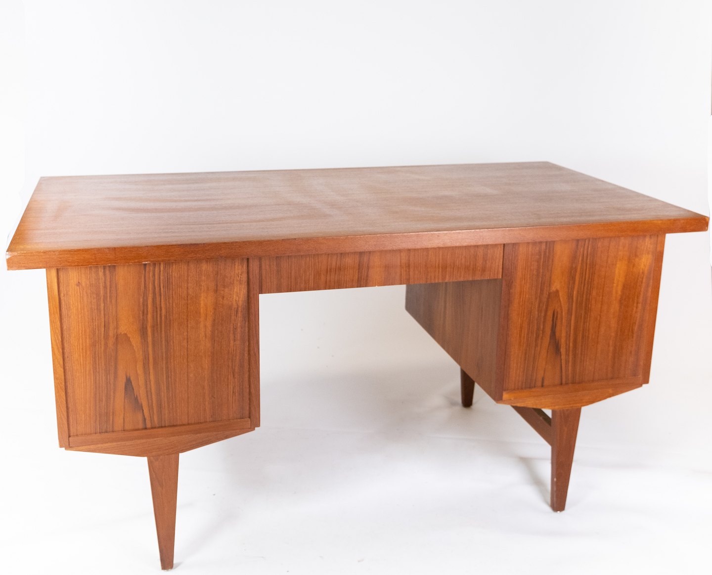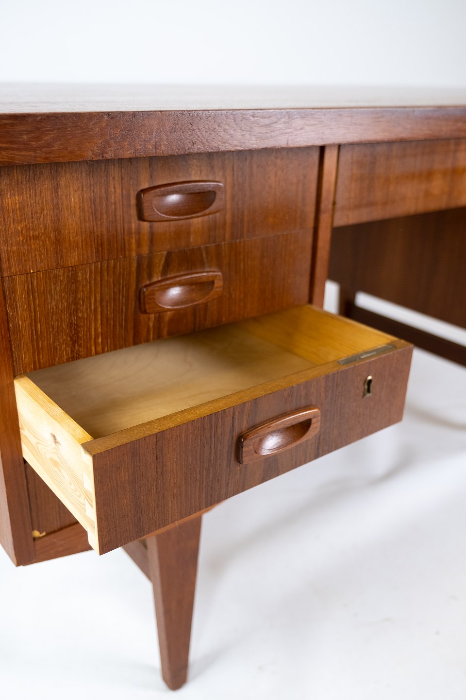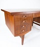 Skrivebord i teak af dansk design fra 1960erne. Bordet er i flot brugt stand.