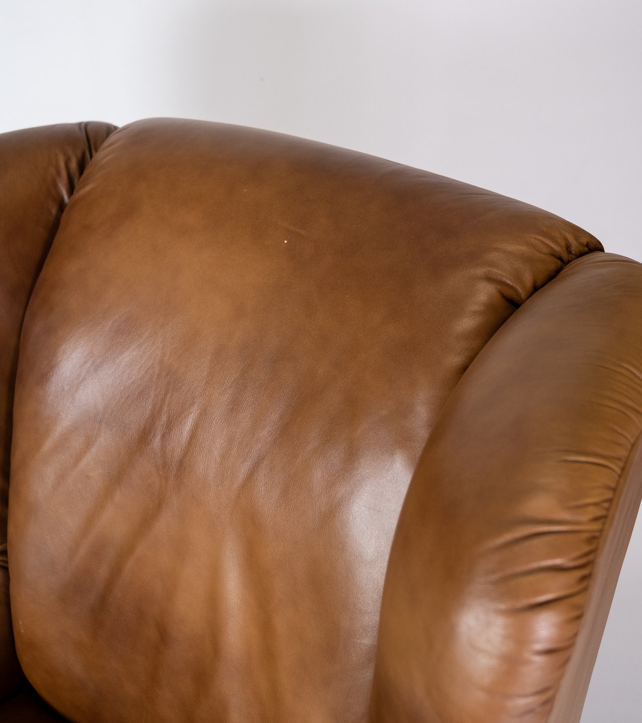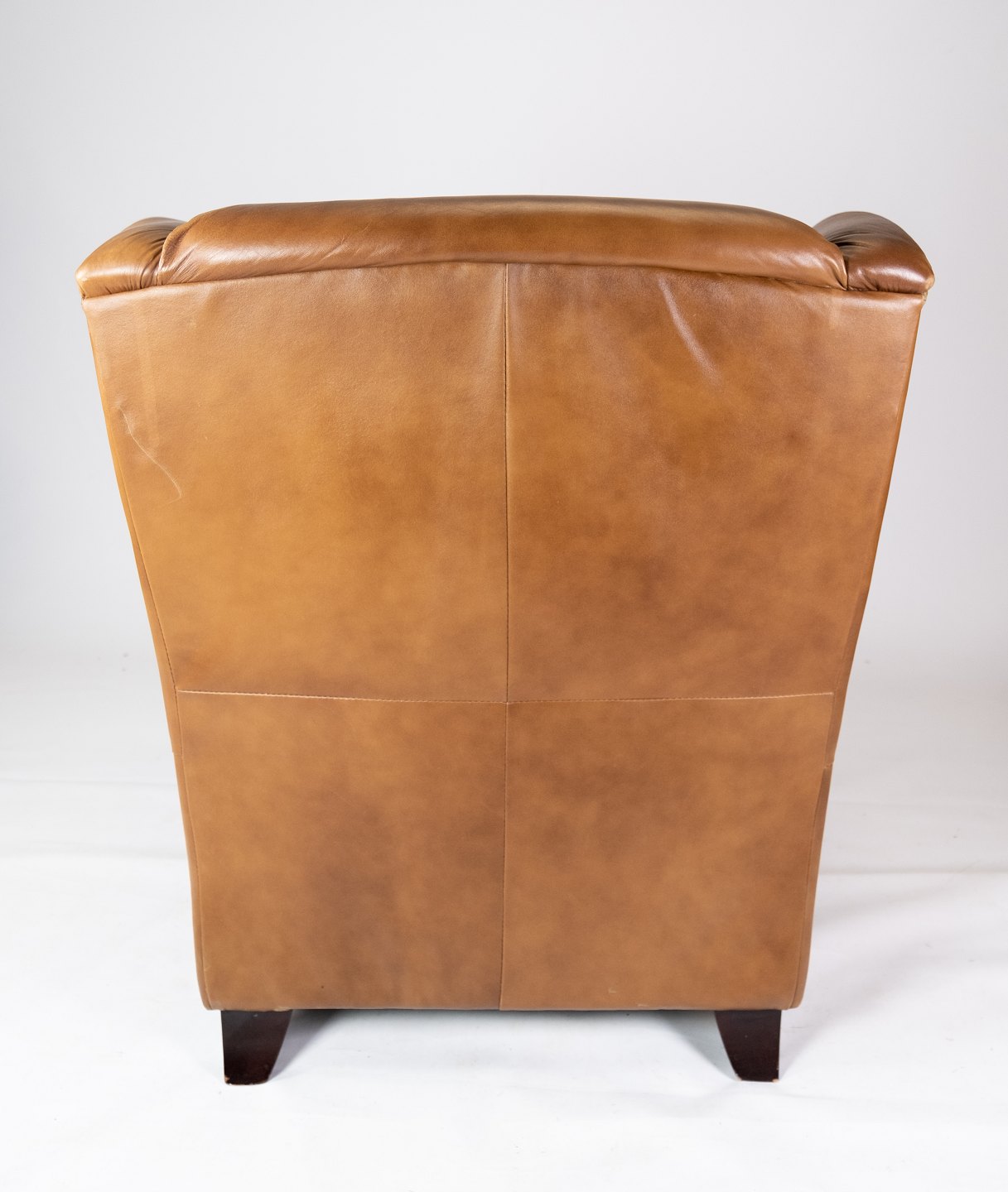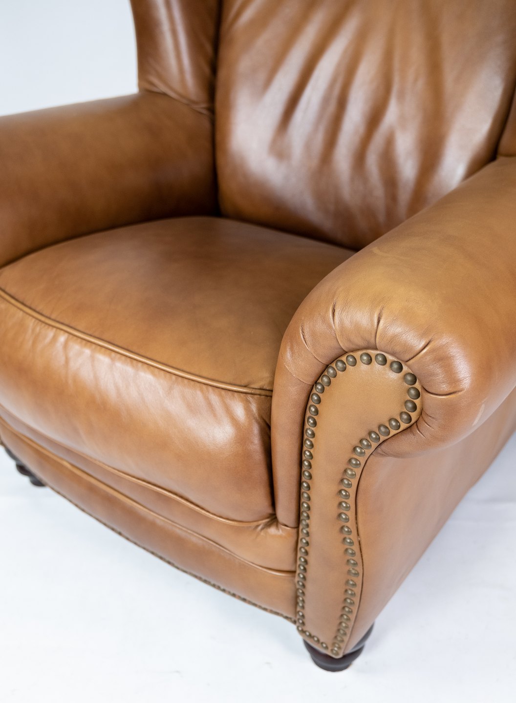 SolgtStor hvilestole/øreklapstol i cognacfarvet læder. Stolen er i flot brugt stand.