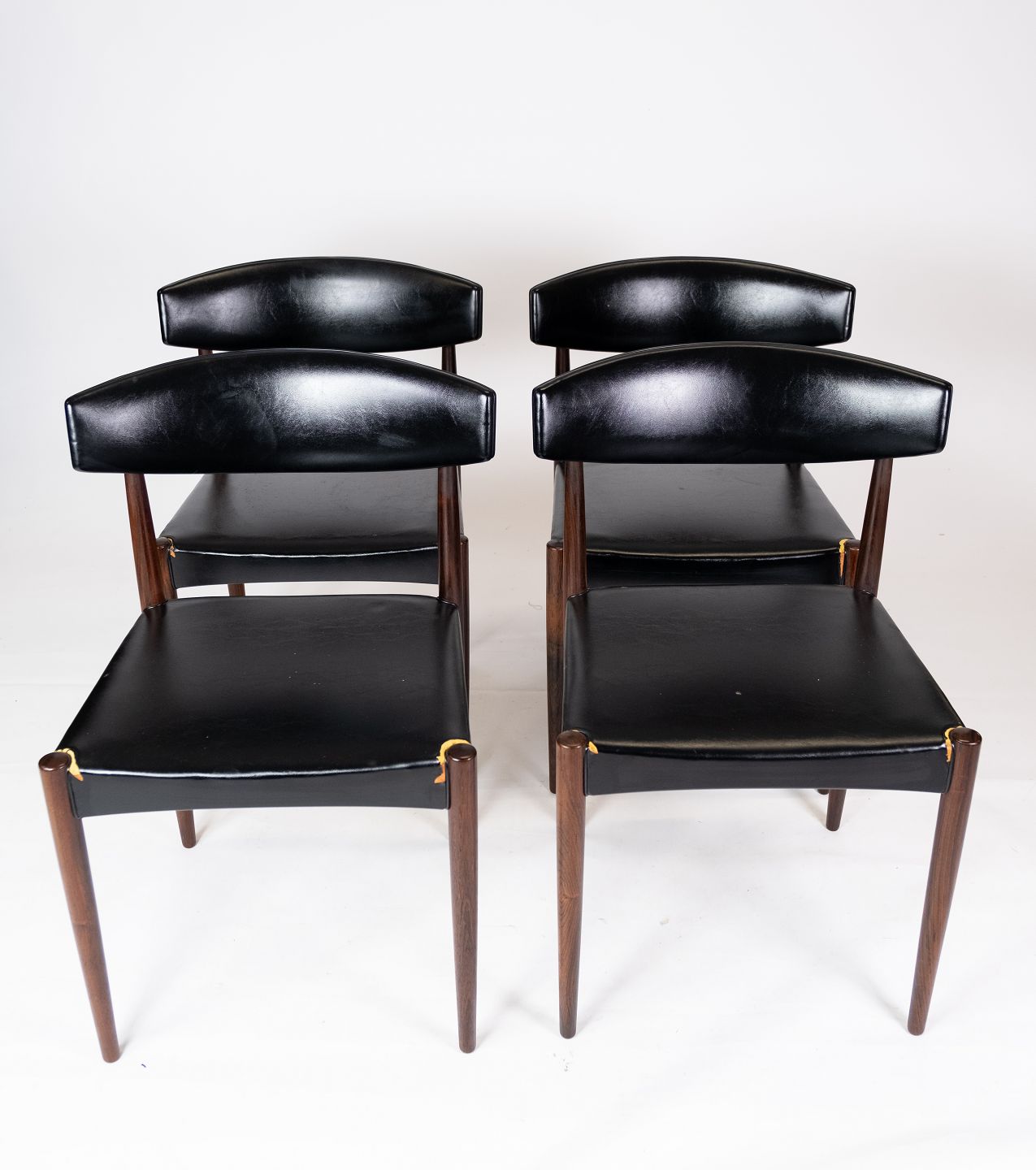 This set of four dining chairs is a beautiful example of Danish design from the 1960s. The chairs are made of rosewood, an exclusive wood known for its rich color and beautiful grain.