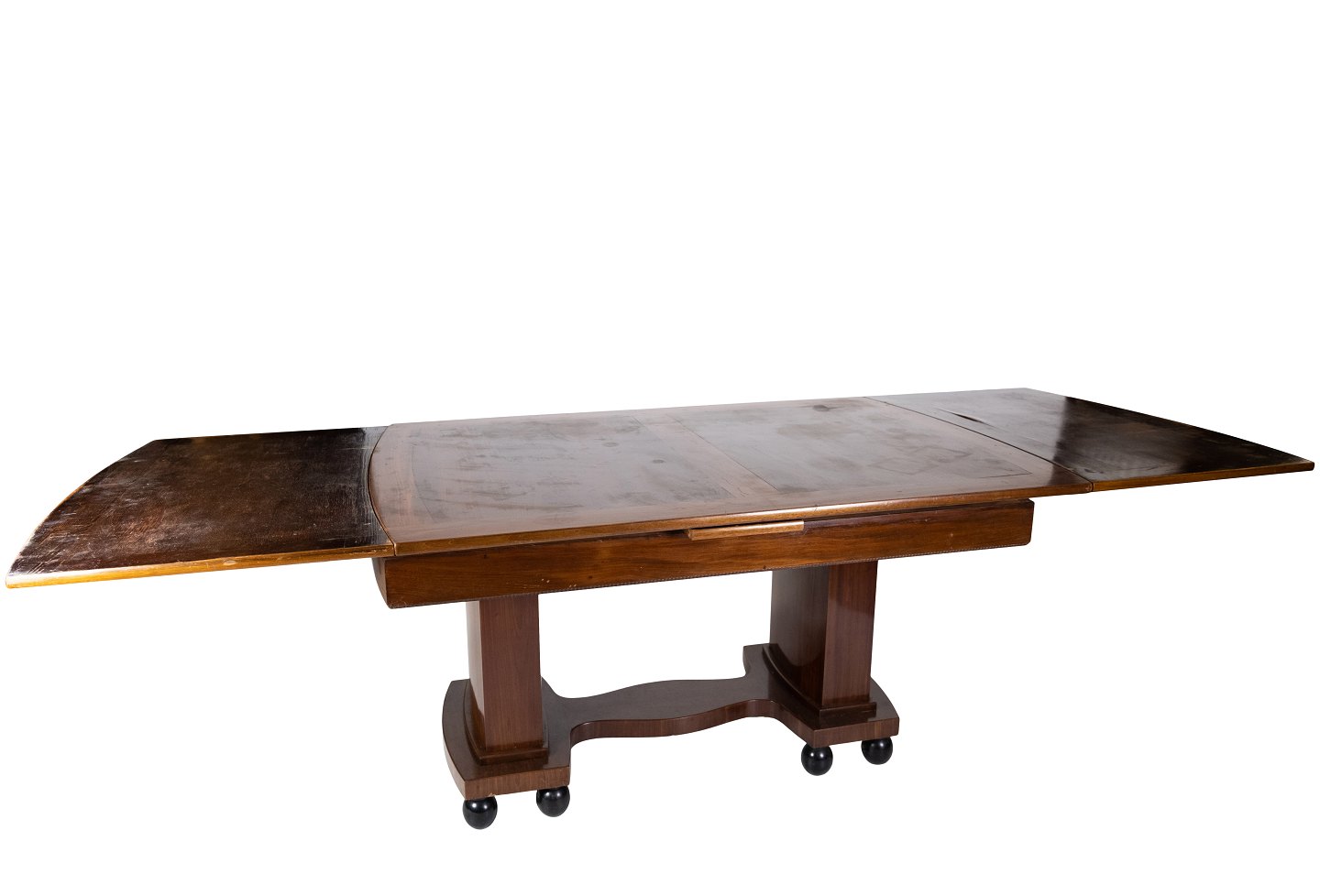 Antikt spisebord i mahogni og med hollandsk udtræk fra 1920erne. Bordet er i flot brugt stand.