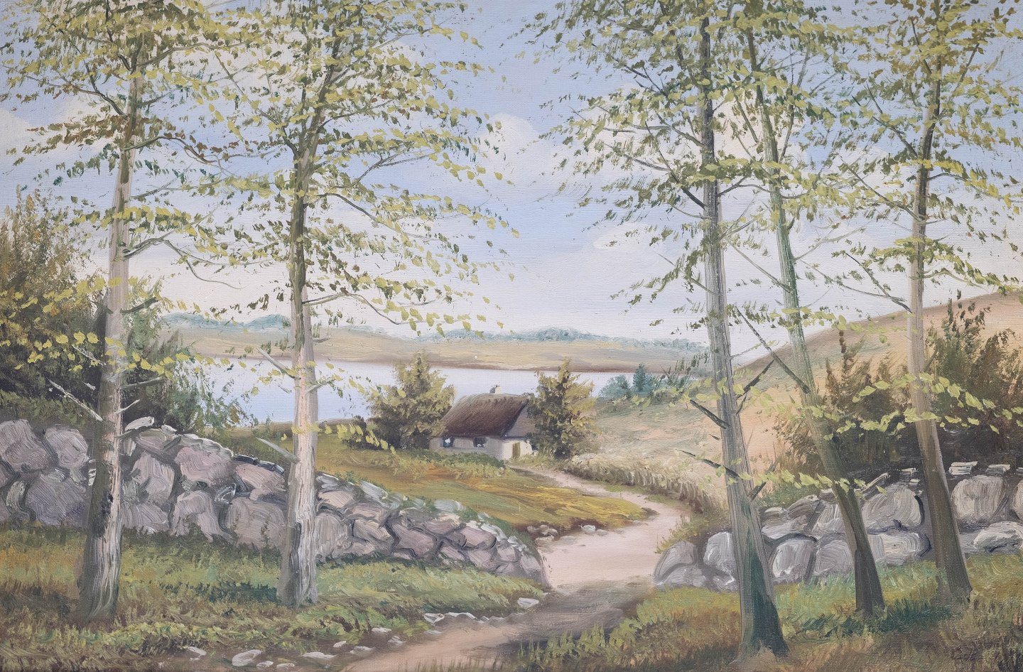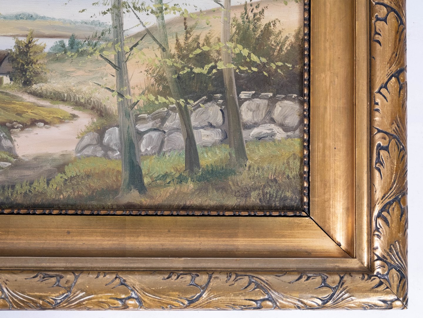 Oil painting with nature motif and with gilded frame from the 1930s.