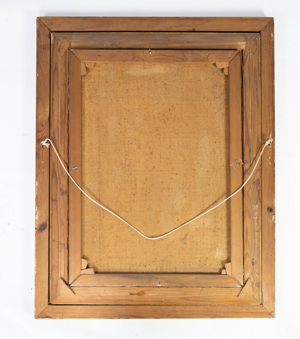Oil painting with motif of a home and with gilded frame, unknown signature from the 1920s.
