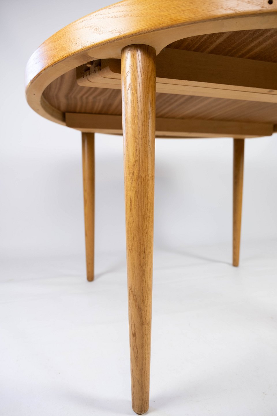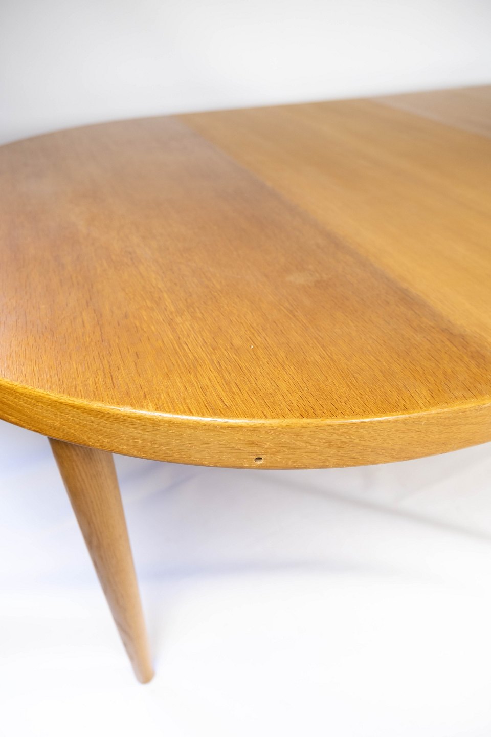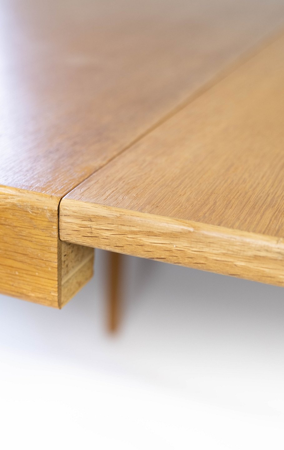 SolgtSpisebord i eg med to tillægsplader designet af Omann Junior fra 1960erne. Bordet er i flot brugt stand.