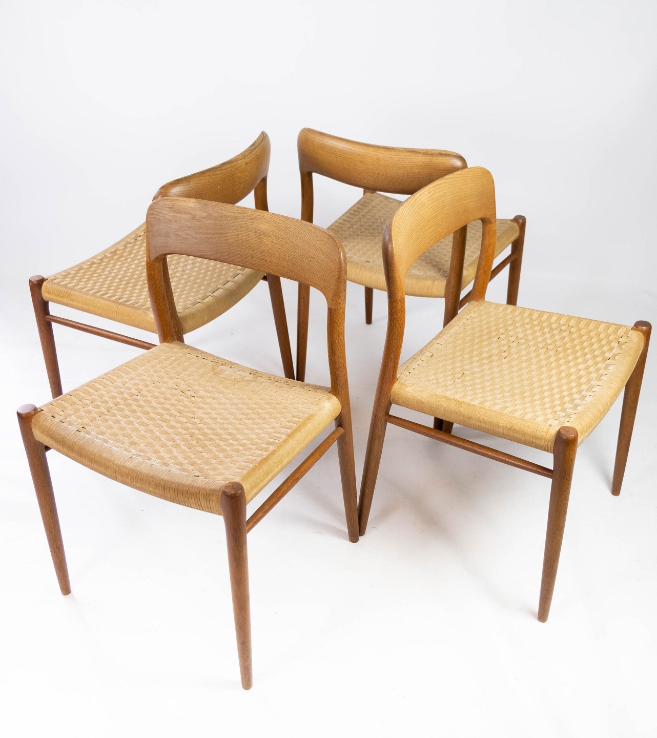 SoldA set of four dining chairs, model 75, in oak and papercord designed by N.O. Møller from the 1960s. The chairs are in great vintage condition.