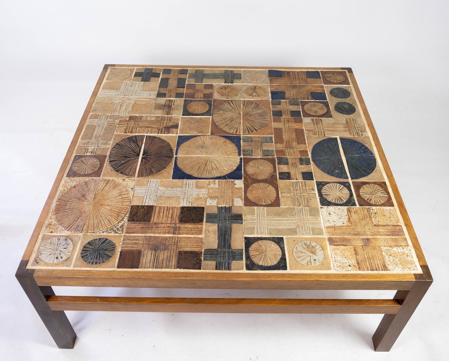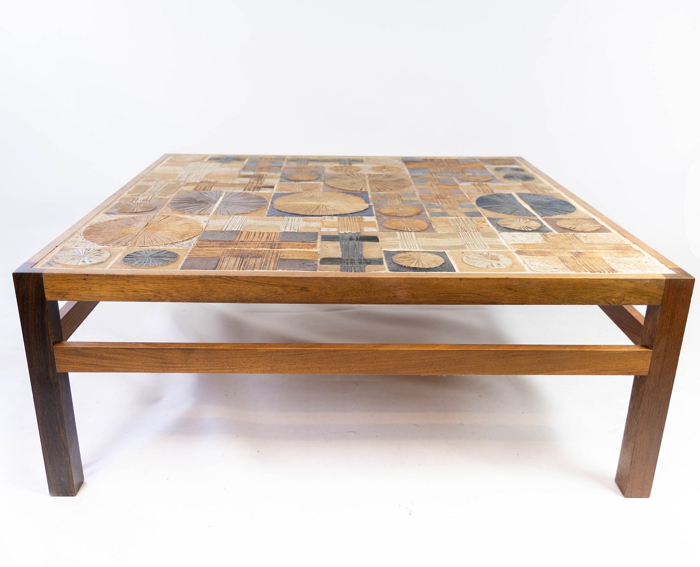 Sofabord af palisander samt keramik klinker designet af Tue Poulsen og fremstillet hos snedker mester Erik Wörtz fra 1960erne.